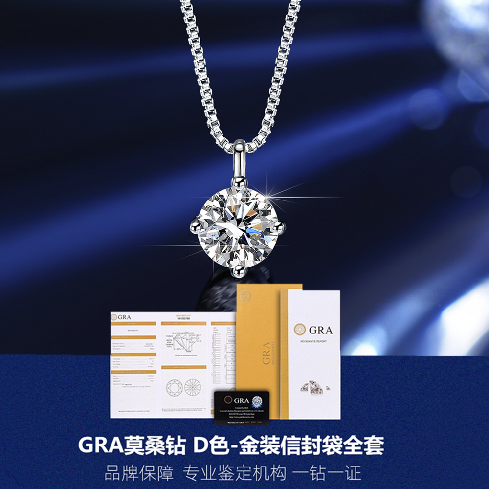 S925純銀莫桑石ペンダントネックレス女性ファッション四爪モザイクシンプル一カラット韓国版クラシック鎖骨チェーン