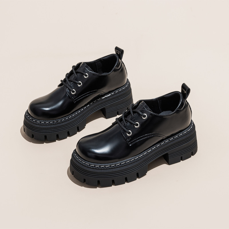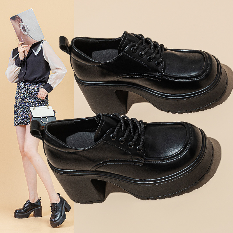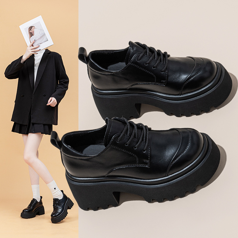 インヒール厚底レザーシューズ レディース ブリティッシュスタイル 2025年新作 春秋 ハイヒールシューズ 小柄さん向け 万能 レースアップシューズ