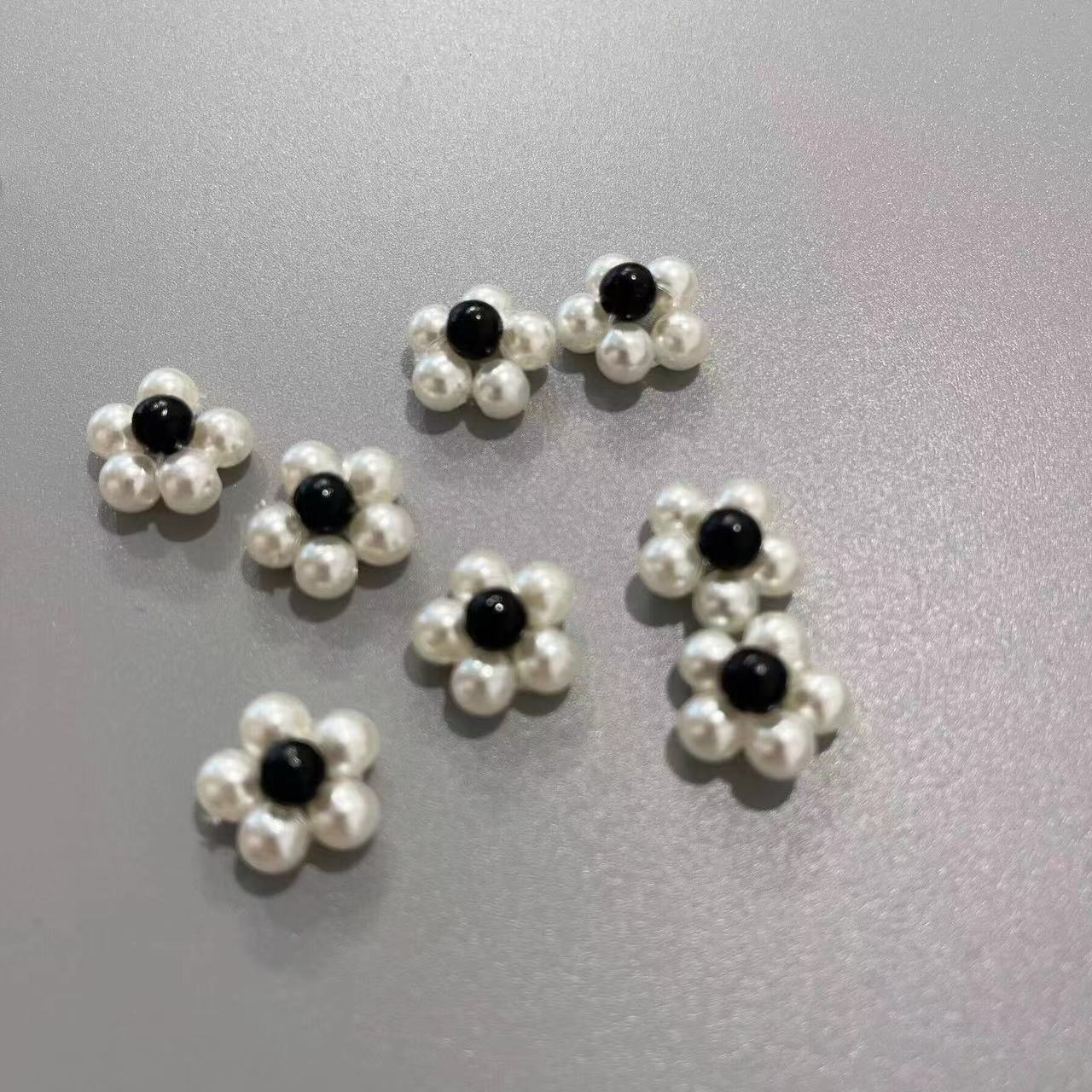 オフホワイトの 1.6cm 花,黒と白の小さな花,2cm 花