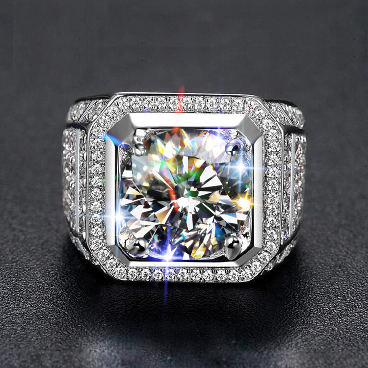 新型男性指輪男覇気ファッションドリルリングシミュレーションドリルリング男925プラチナメッキ莫桑石指輪卸売り