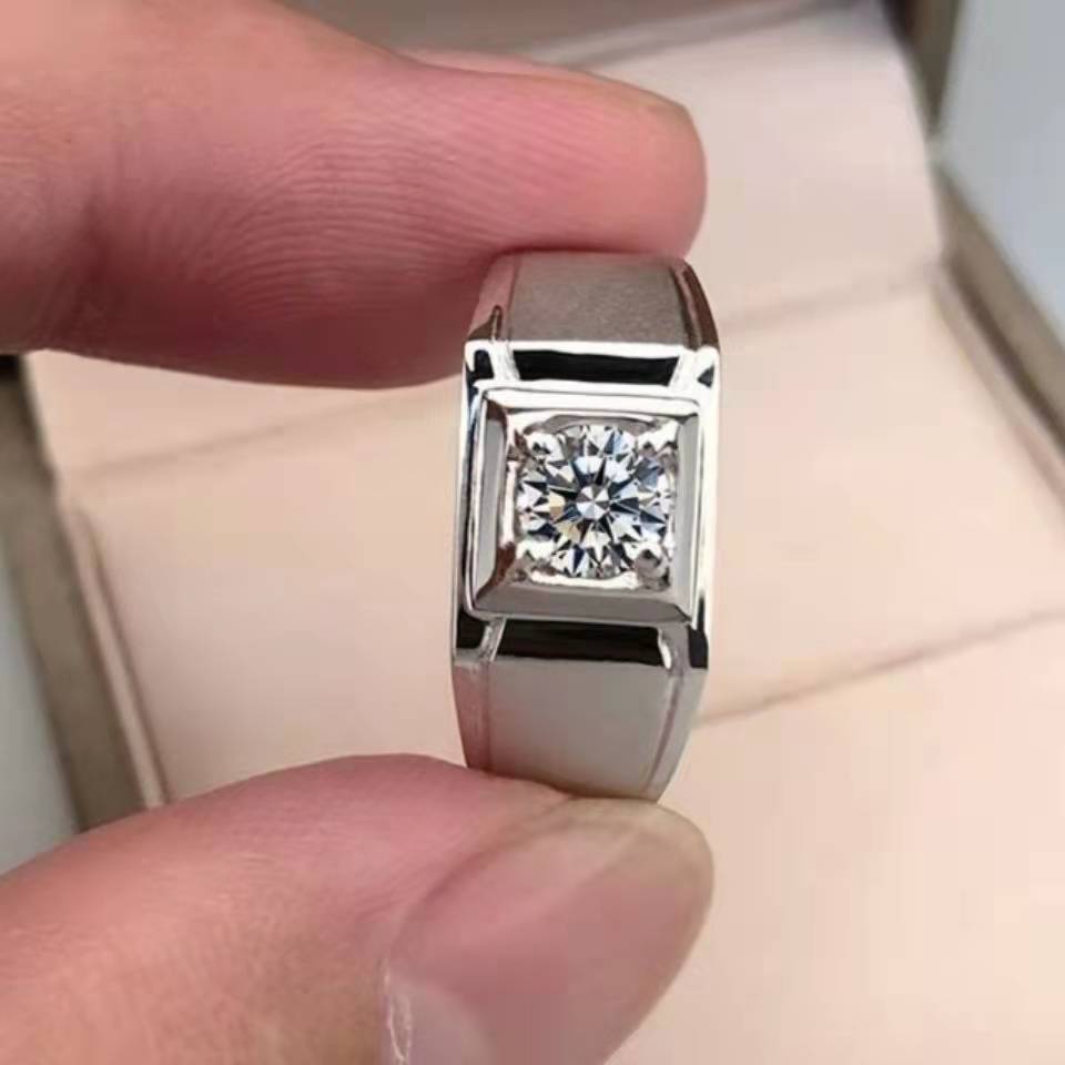 正規品輸入アメリカ莫桑石指輪メンズ18kプラチナ1カラットダイヤモンドリングビジネスシンプルOL男性指輪結婚指輪