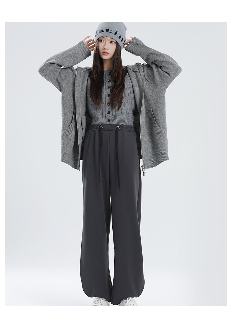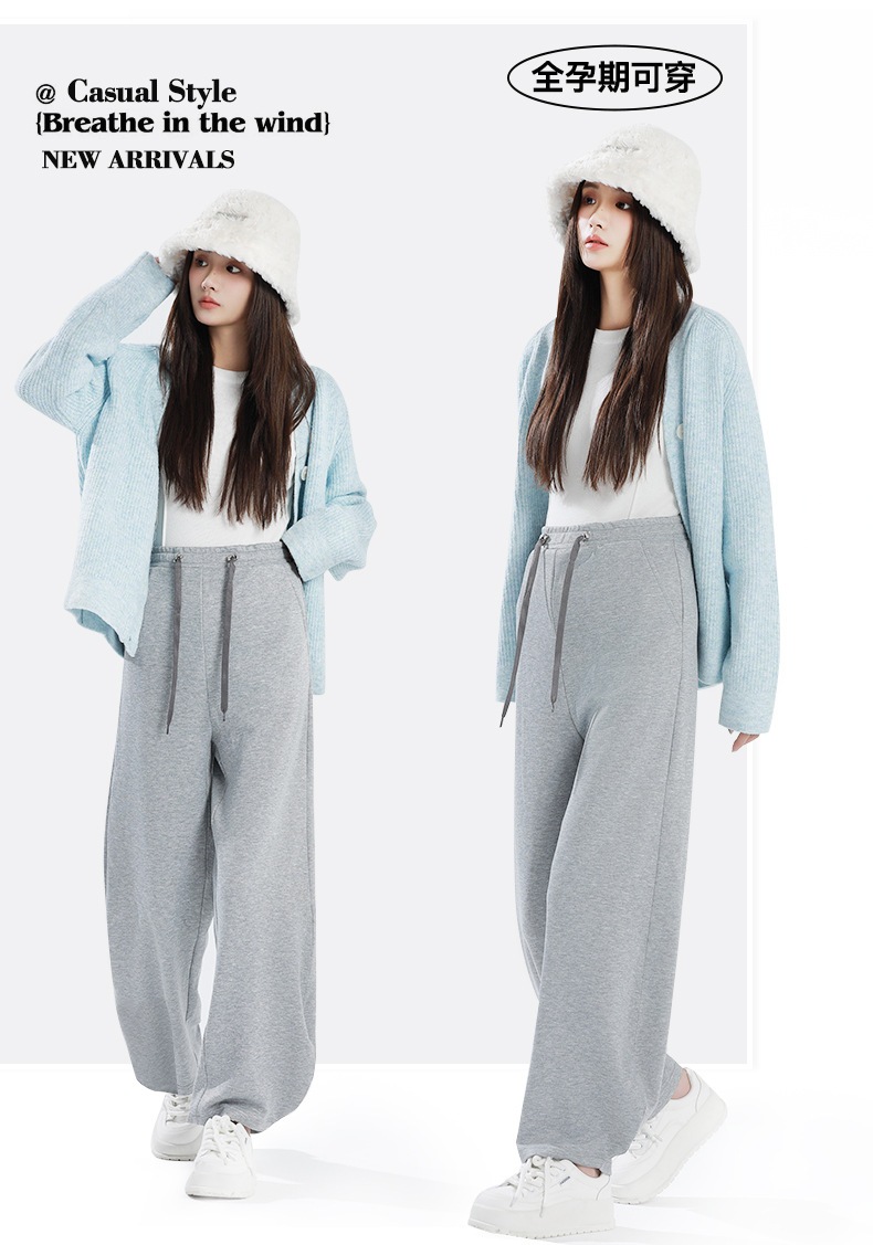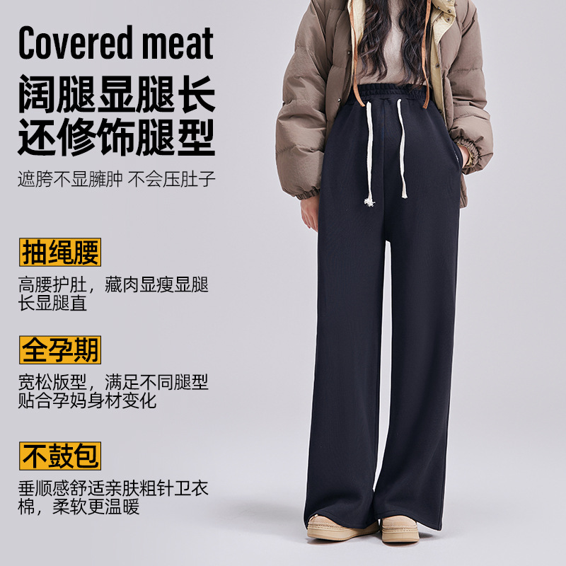 孕妇垂感直筒裤秋冬新款高弹休闲运动裤外穿大码托腹阔腿裤孕妇装