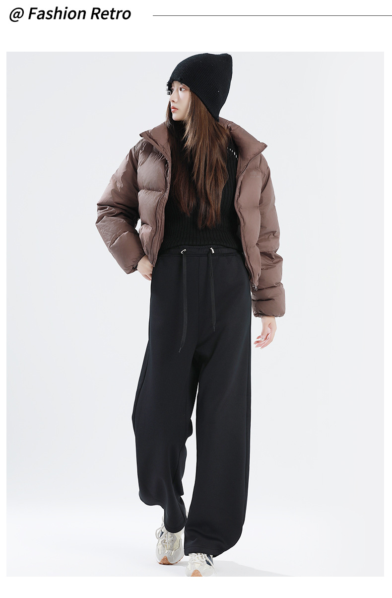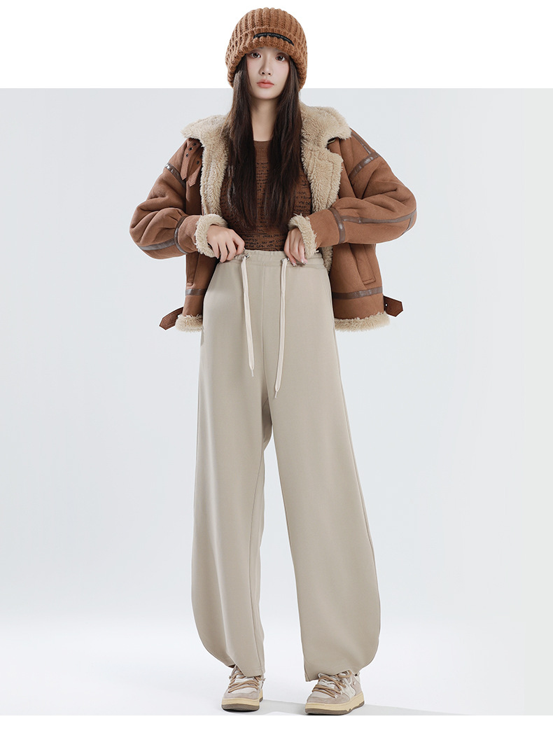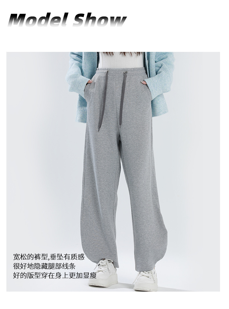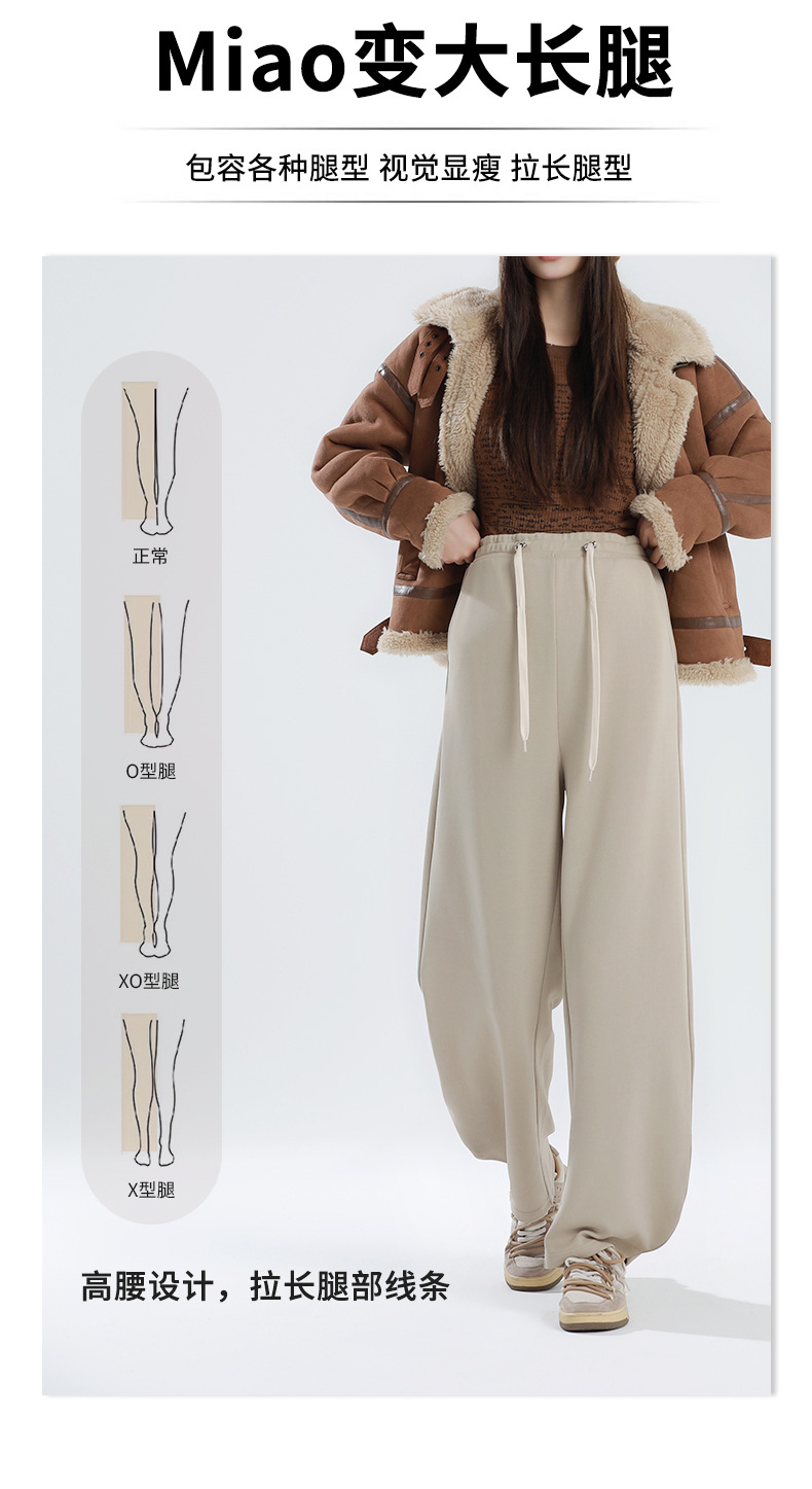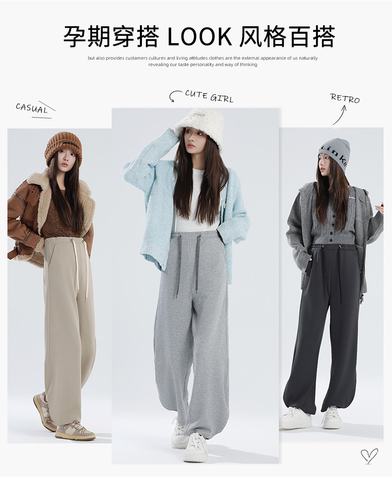孕妇阔腿裤冬季加厚宽松大码束脚裤高腰高弹力带抽绳托腹运动裤