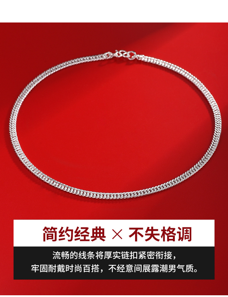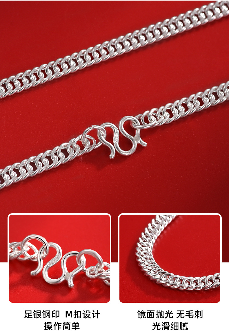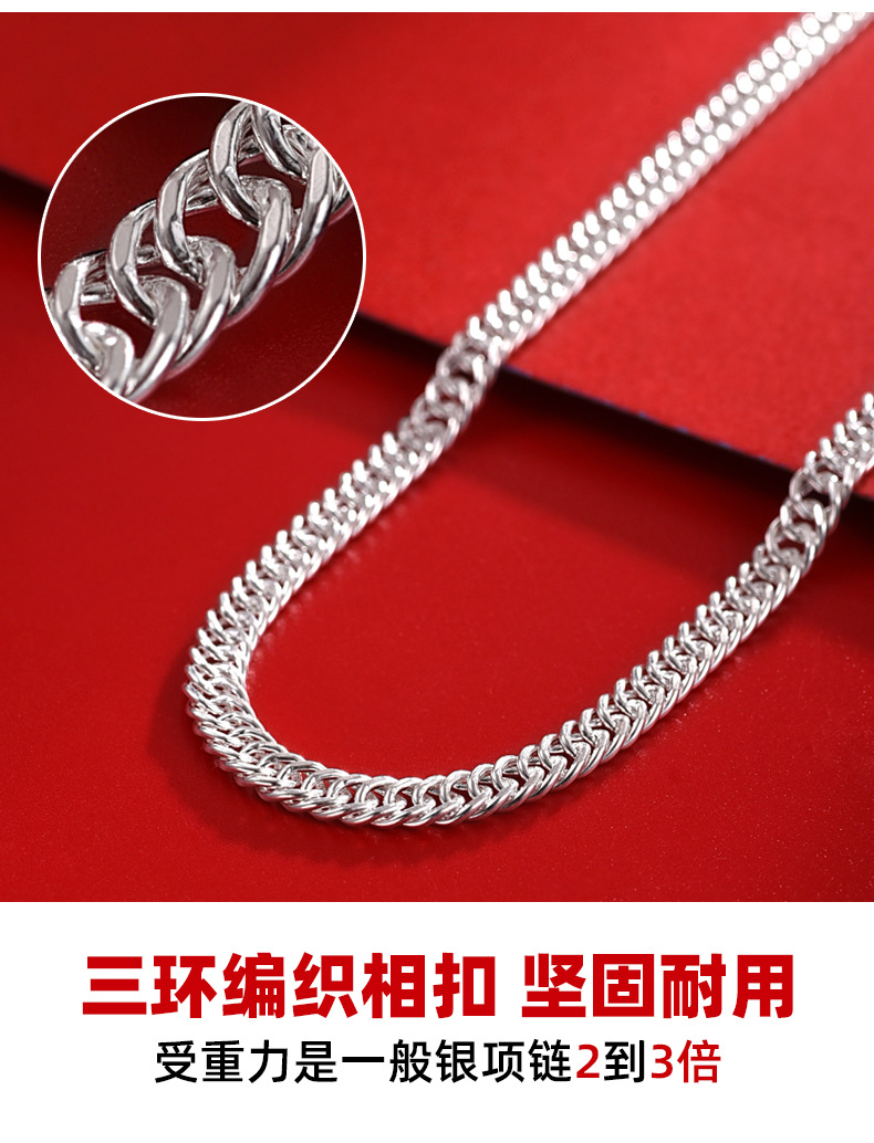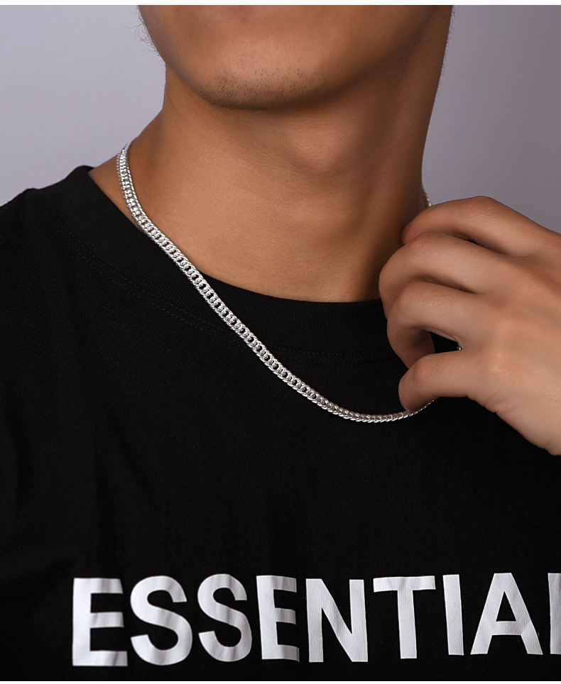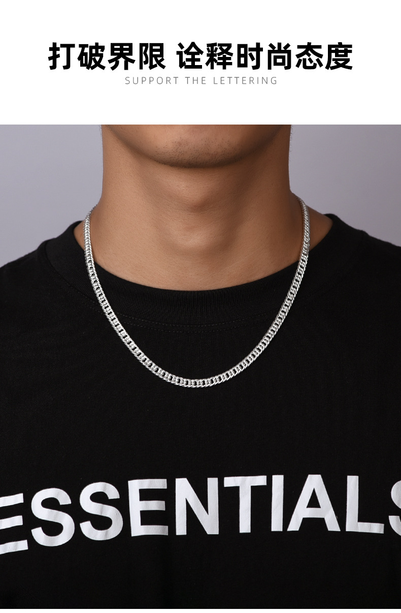 S990純銀のネックレスは男女同じタイプのファッションブランドの足の銀の鎖の子の平鎖の鎖の鎖の女性の男性の馬の鞭の鎖の細い金です。