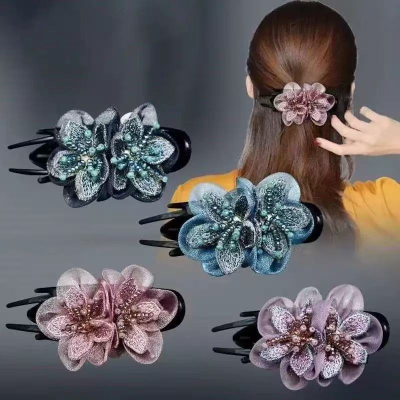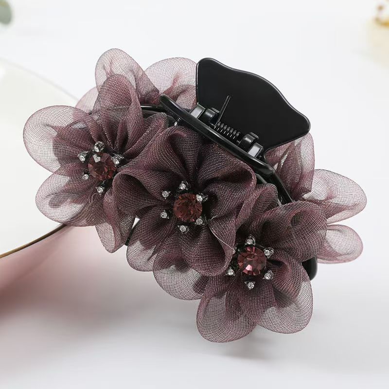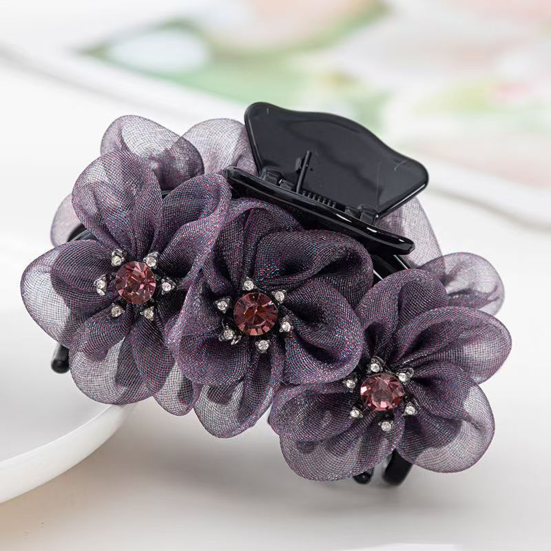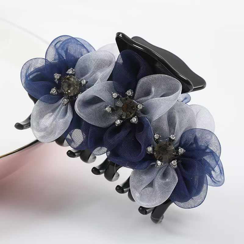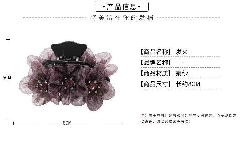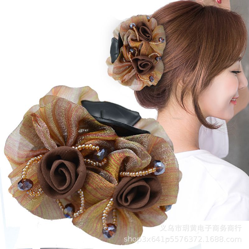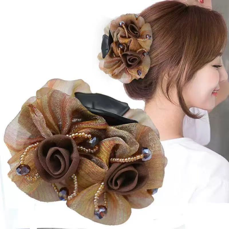 绢纱中号抓夹盘头发气质淑女后脑勺盘发专用花朵发夹优雅发饰