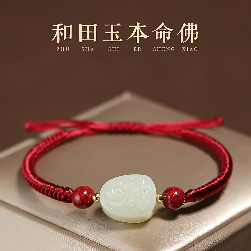 天然新疆和田玉本命仏紅縄ブレスレット和田白玉十二生肖守護神本命年手縄