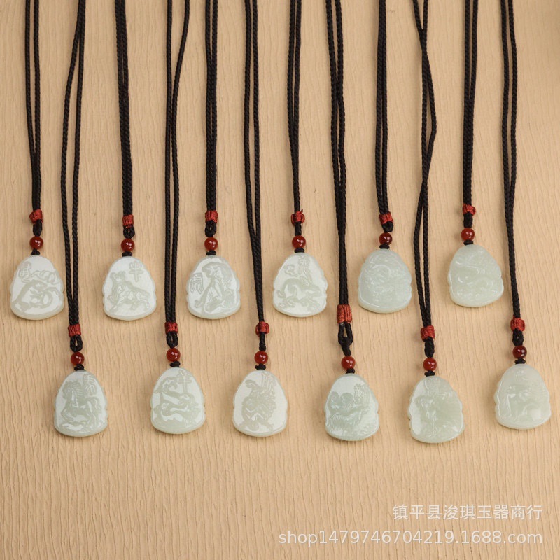 メーカー卸売り天然新疆和田玉十二生肖ペンダント男女モデルアニメ生肖玉ペンダント証明書