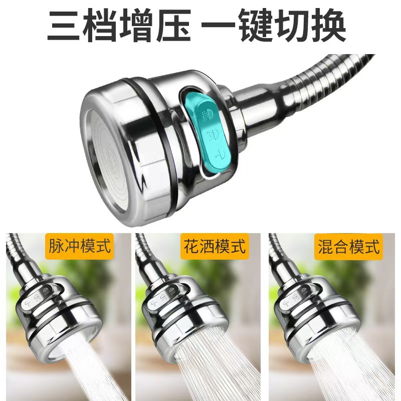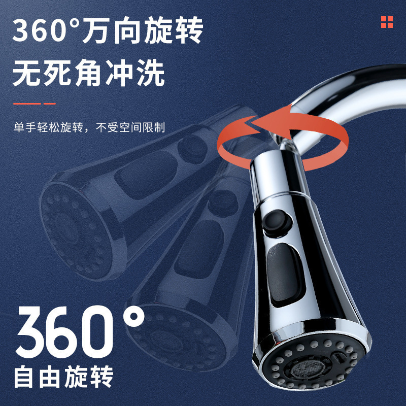 キッチン蛇口万防スプラッシュヘッド水ノズル万方向増圧三段ブレード360度回転洗浄バブラー