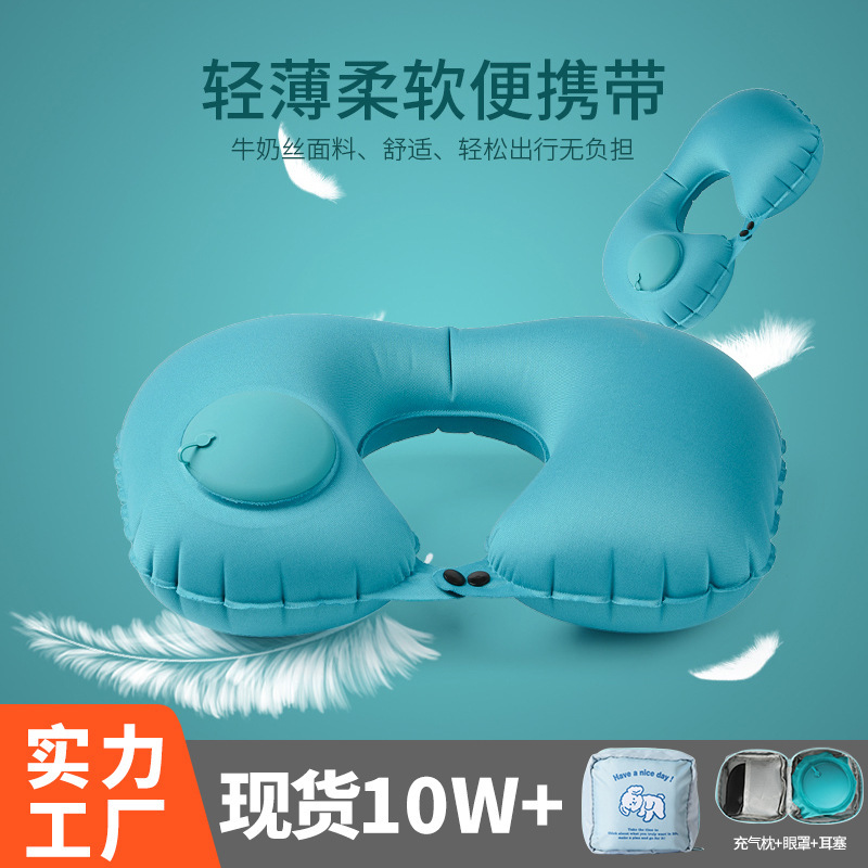 充气U型枕按压自动充气便携旅行护颈枕飞机枕户外旅游三宝充气枕