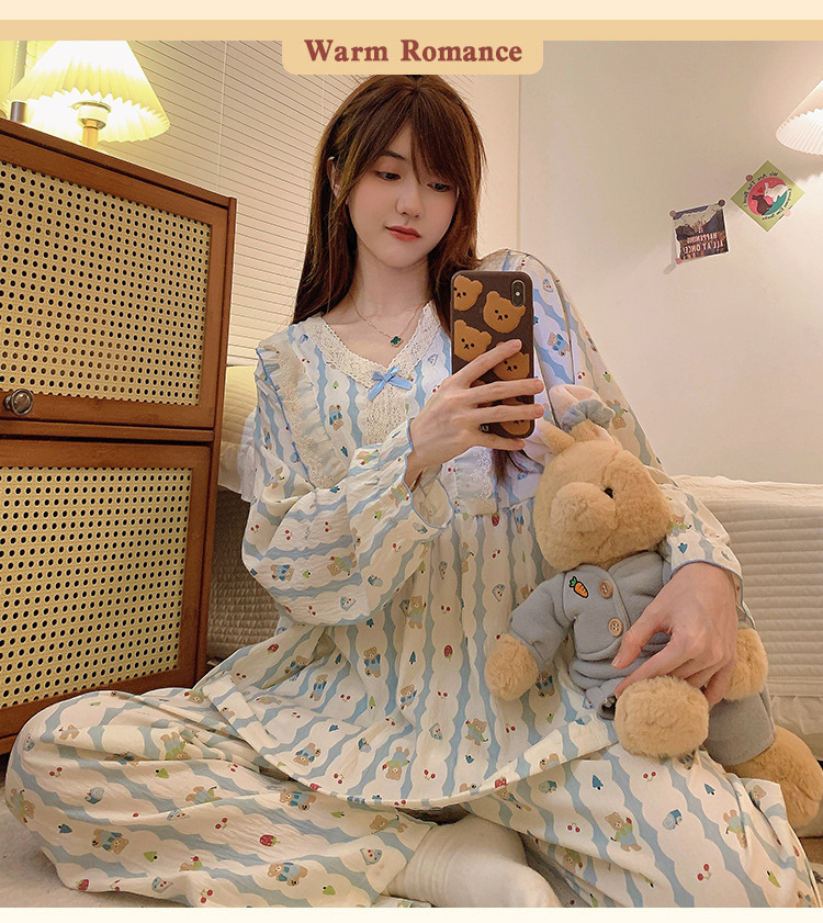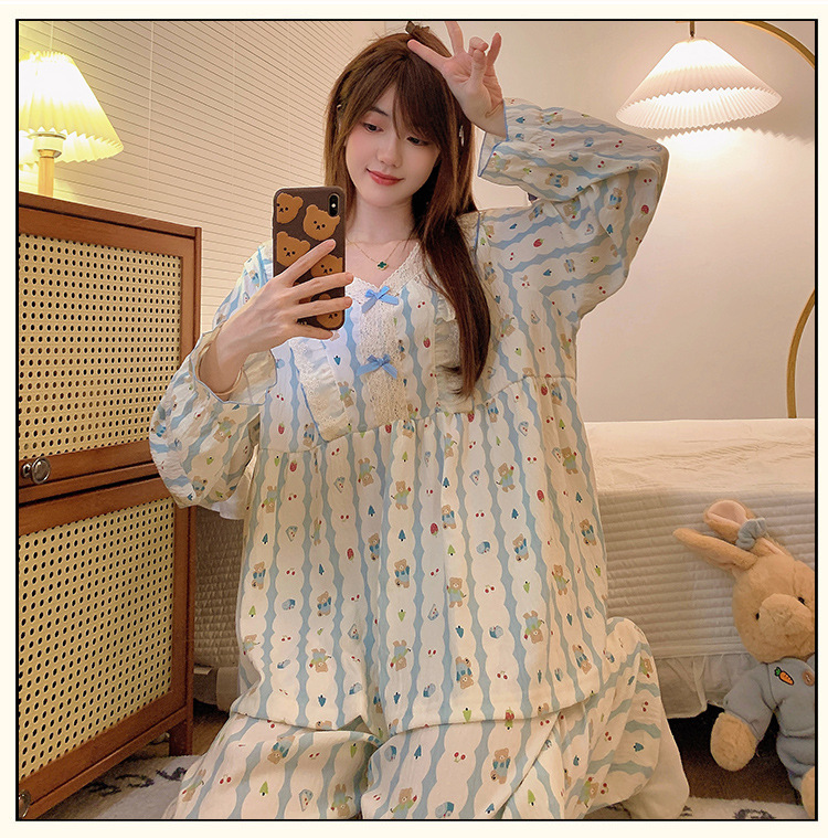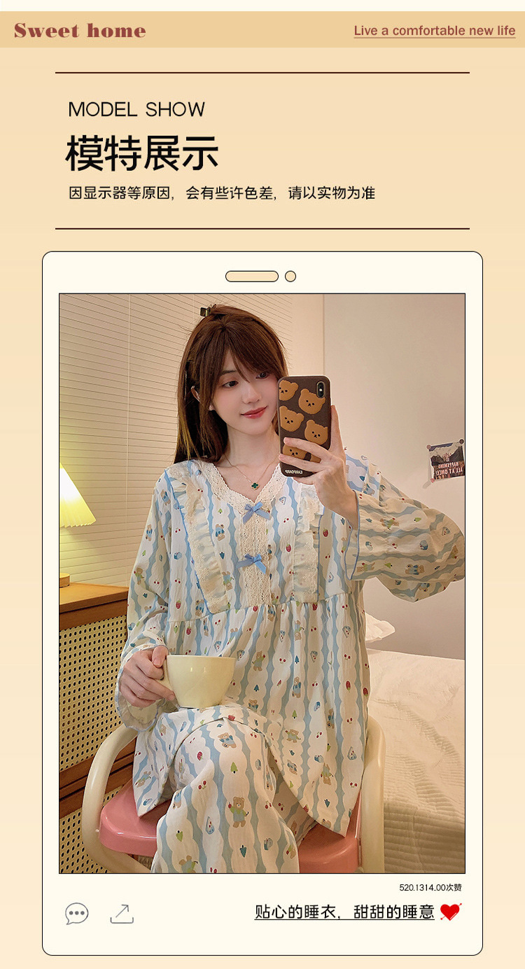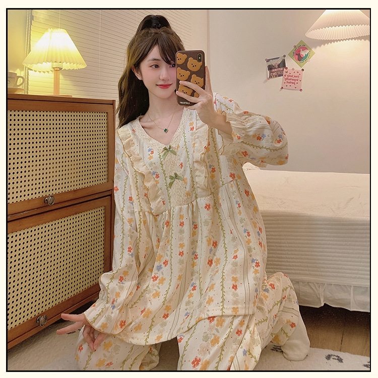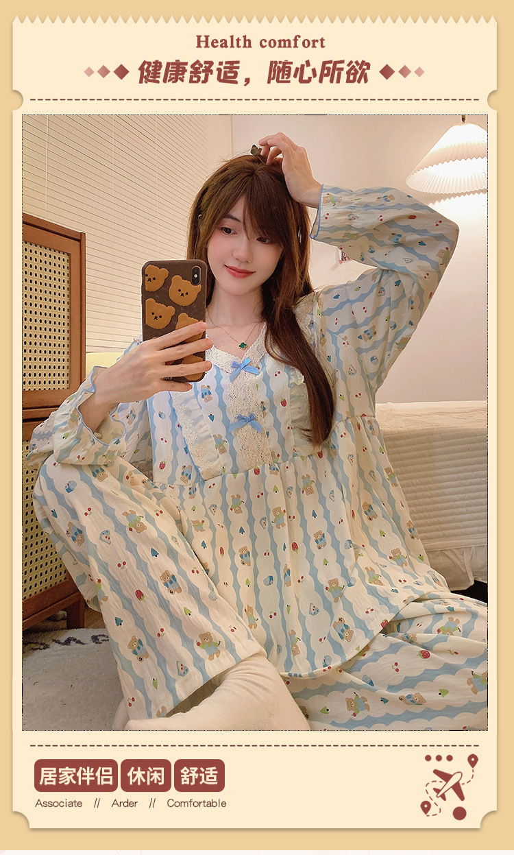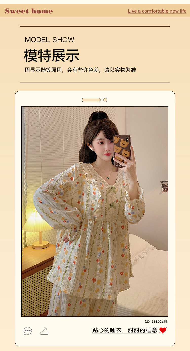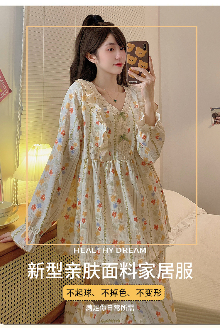 2024新型日系パジャマ女子秋金雲綿長袖セットは、大型サイズ250斤で家庭服を着ることができる