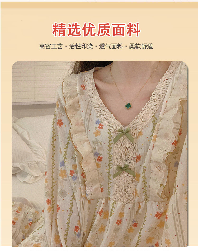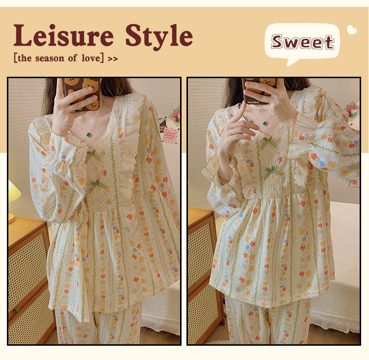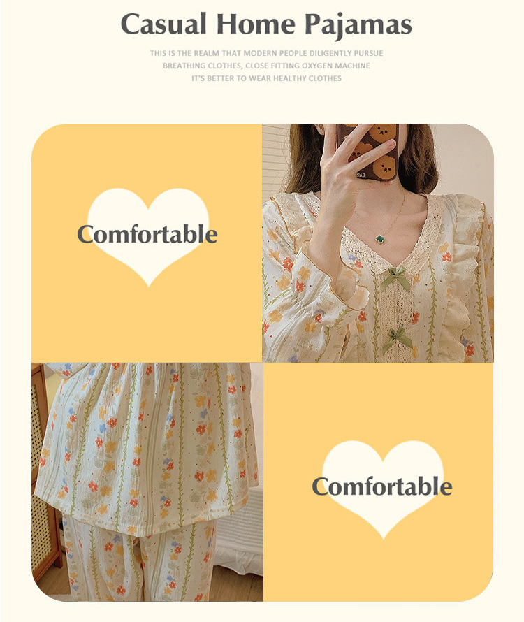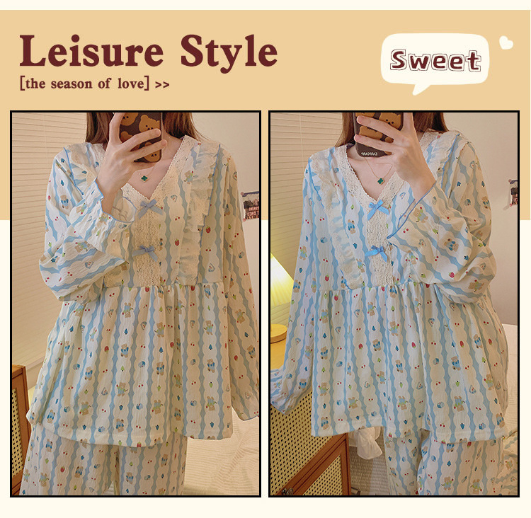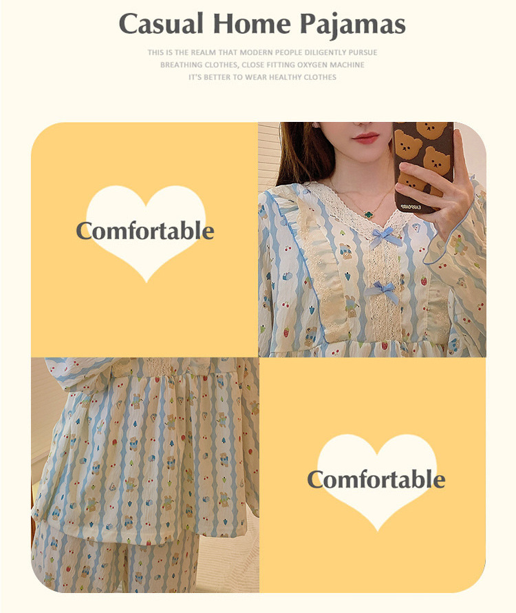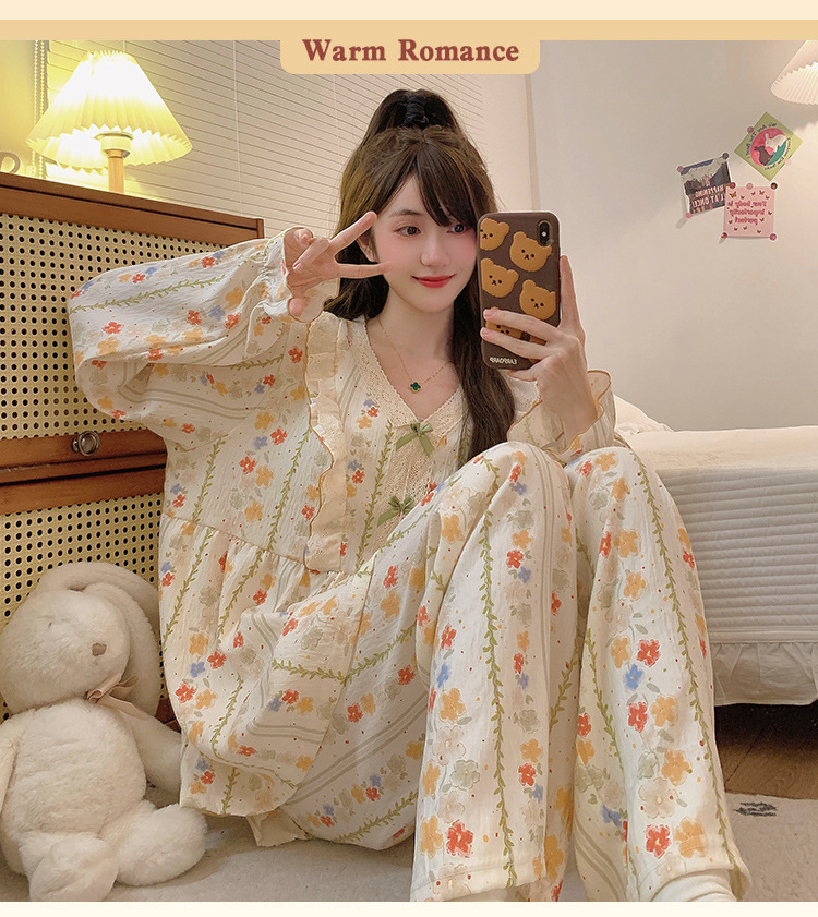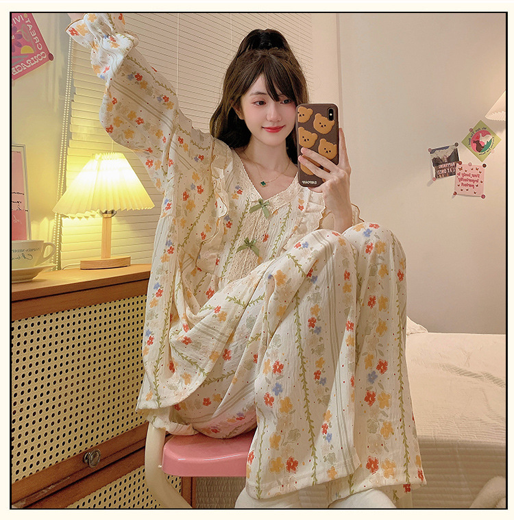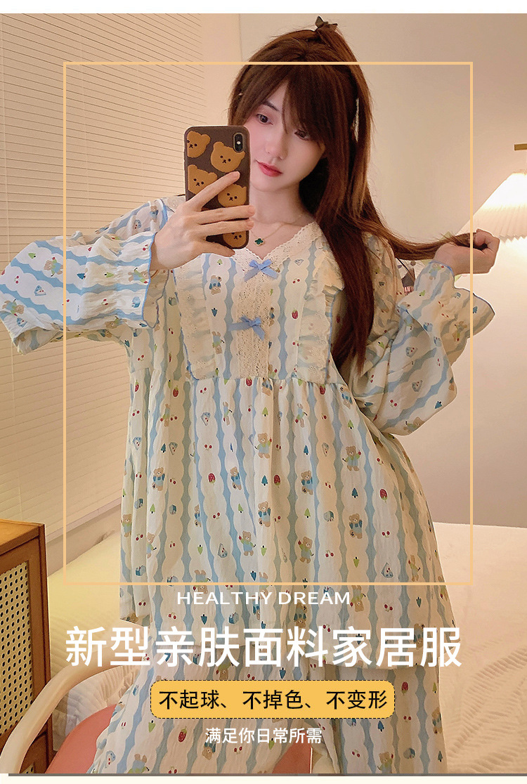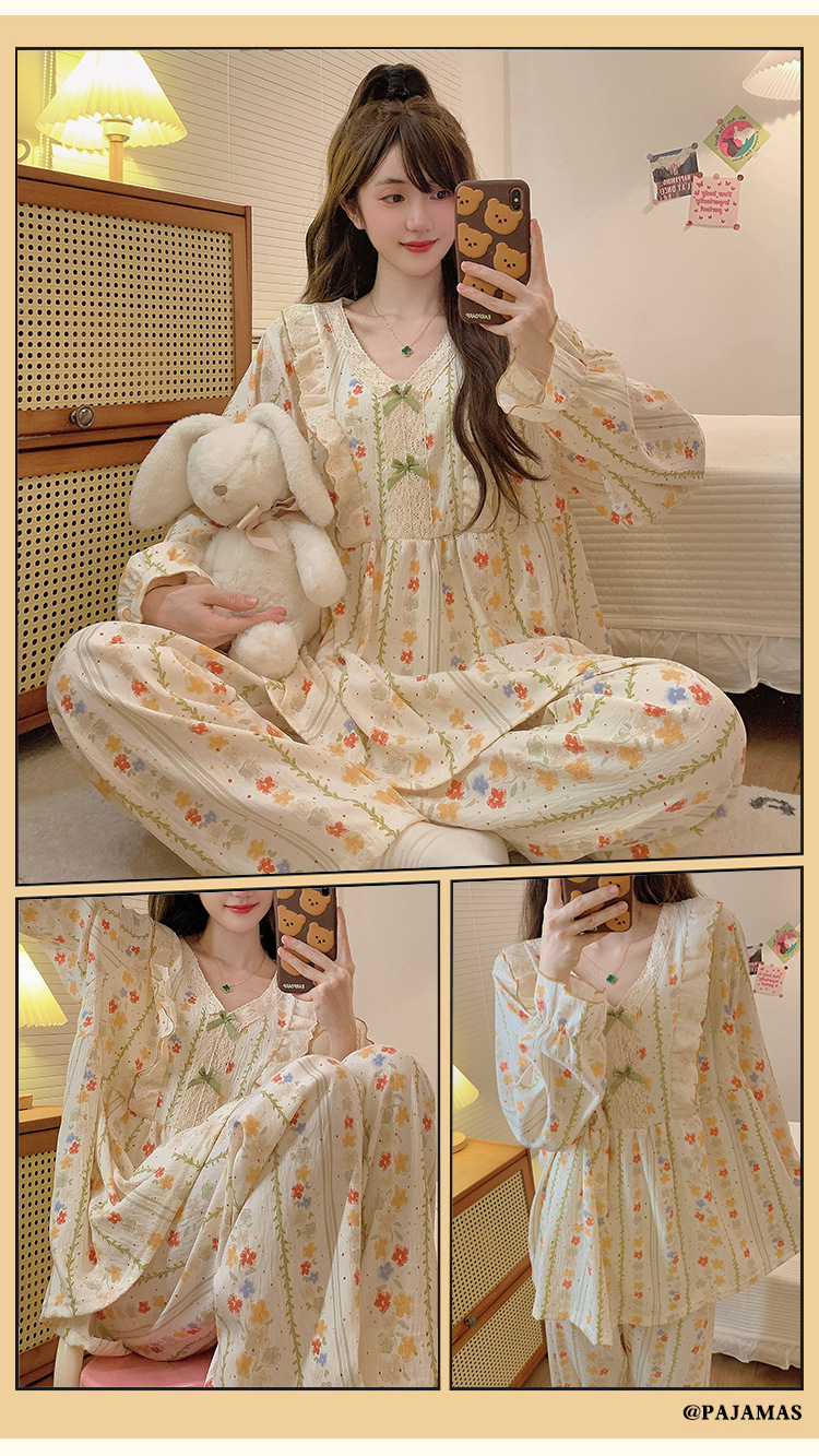 2024新型日系パジャマ女子秋金雲綿長袖セットは、大型サイズ250斤で家庭服を着ることができる