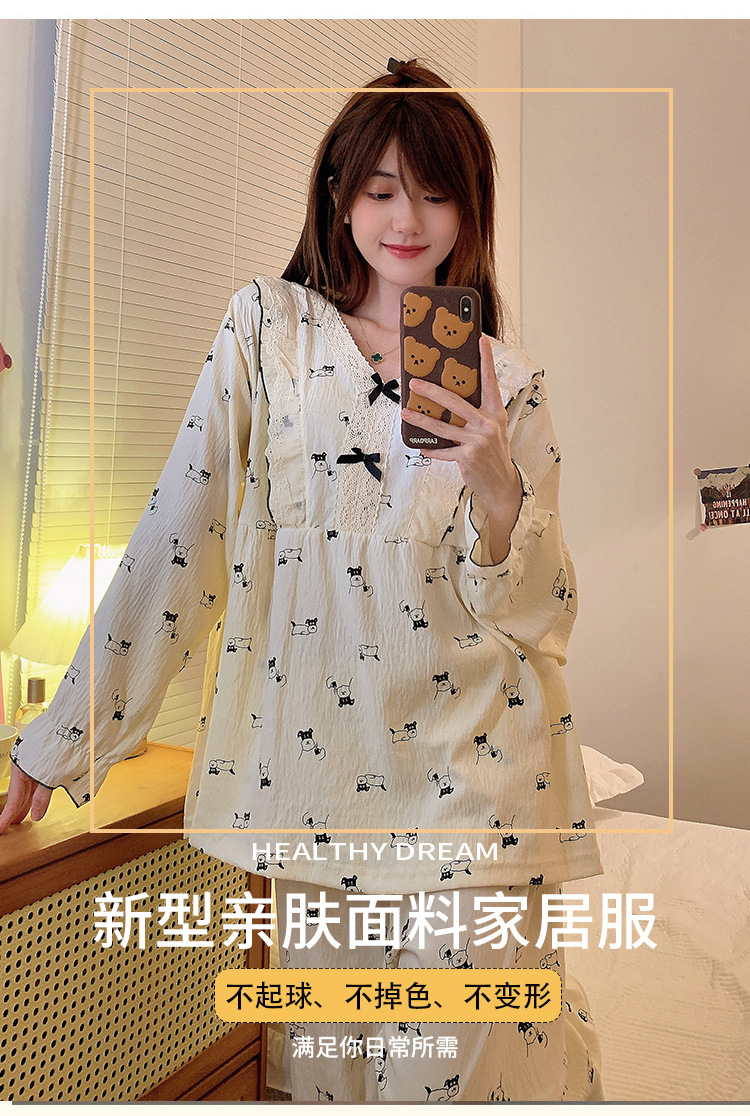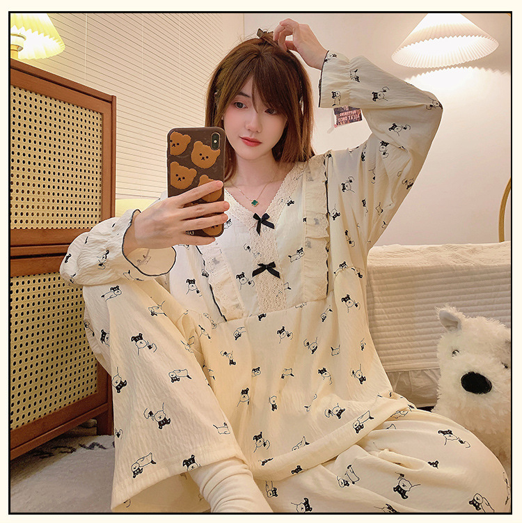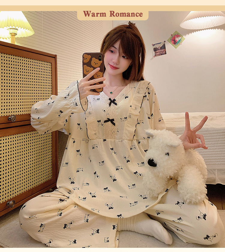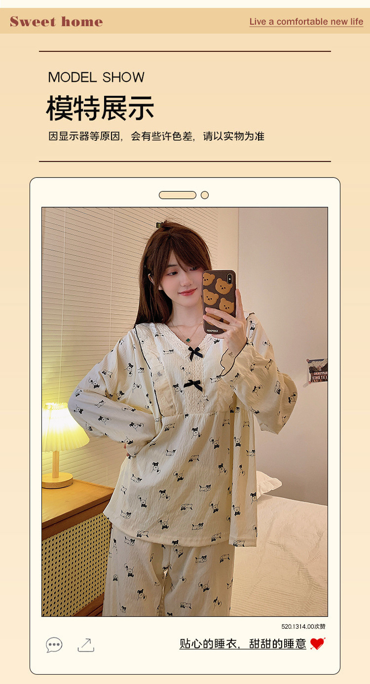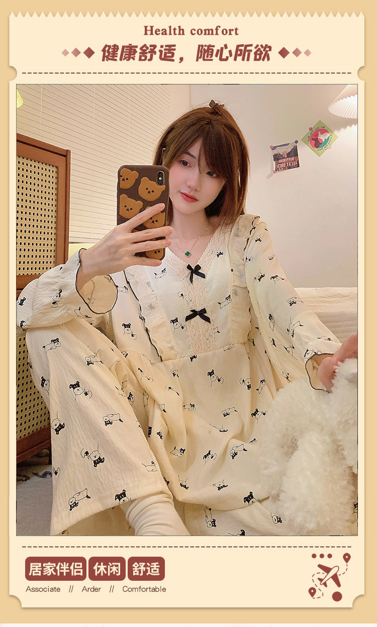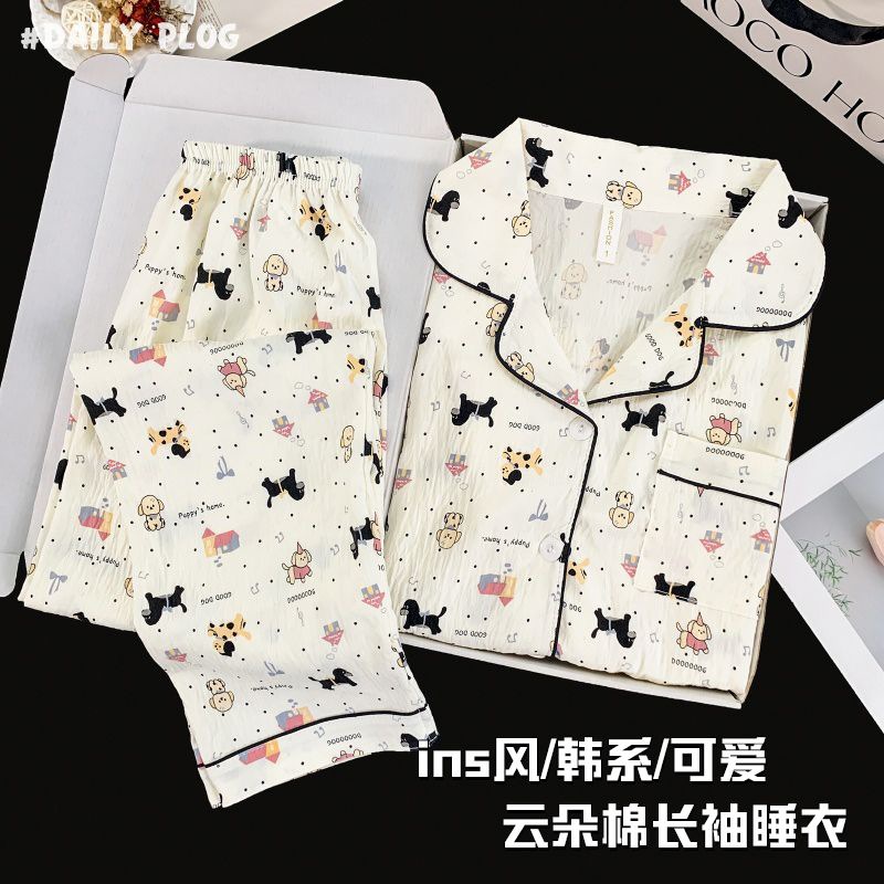 云朵棉波点小狗睡衣女款春秋季长袖长裤ins风可爱学生家居服套装