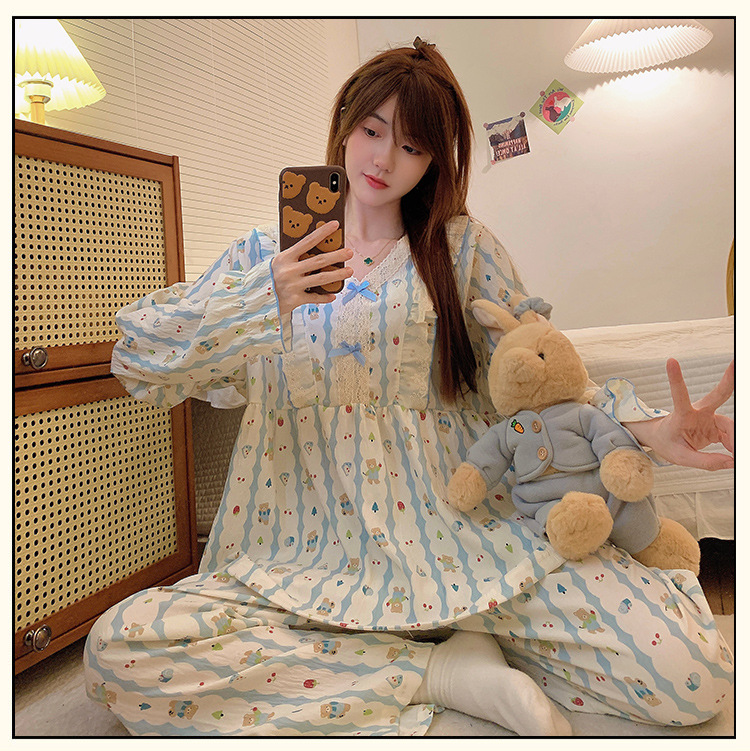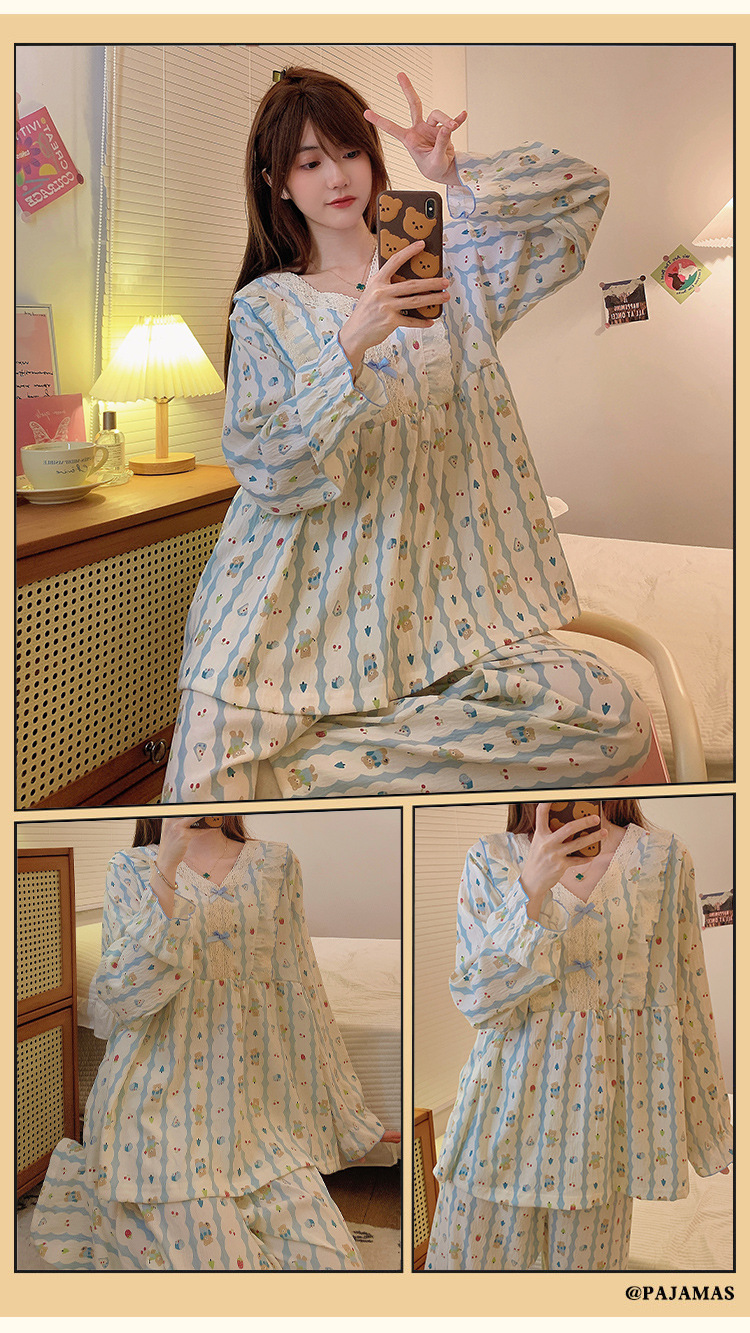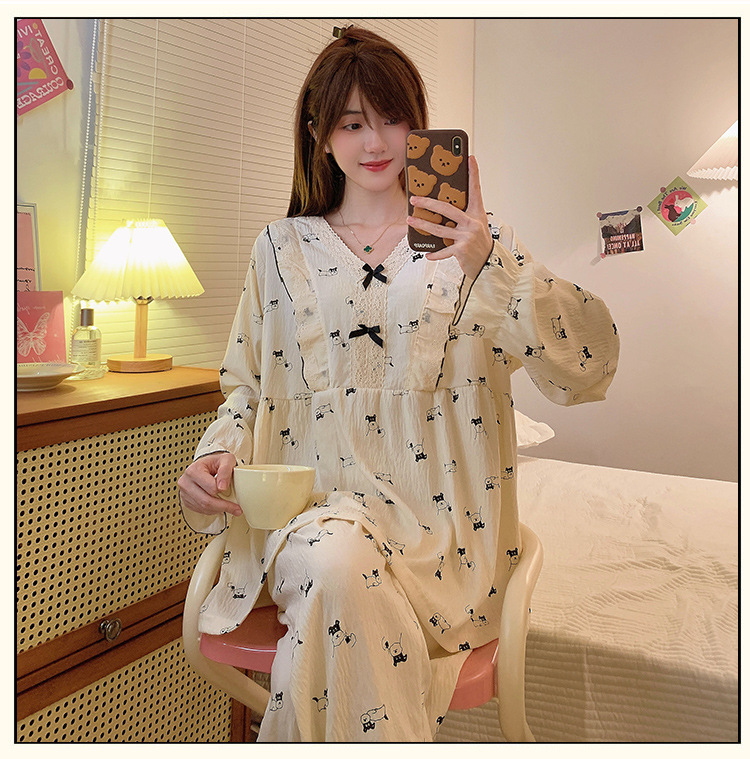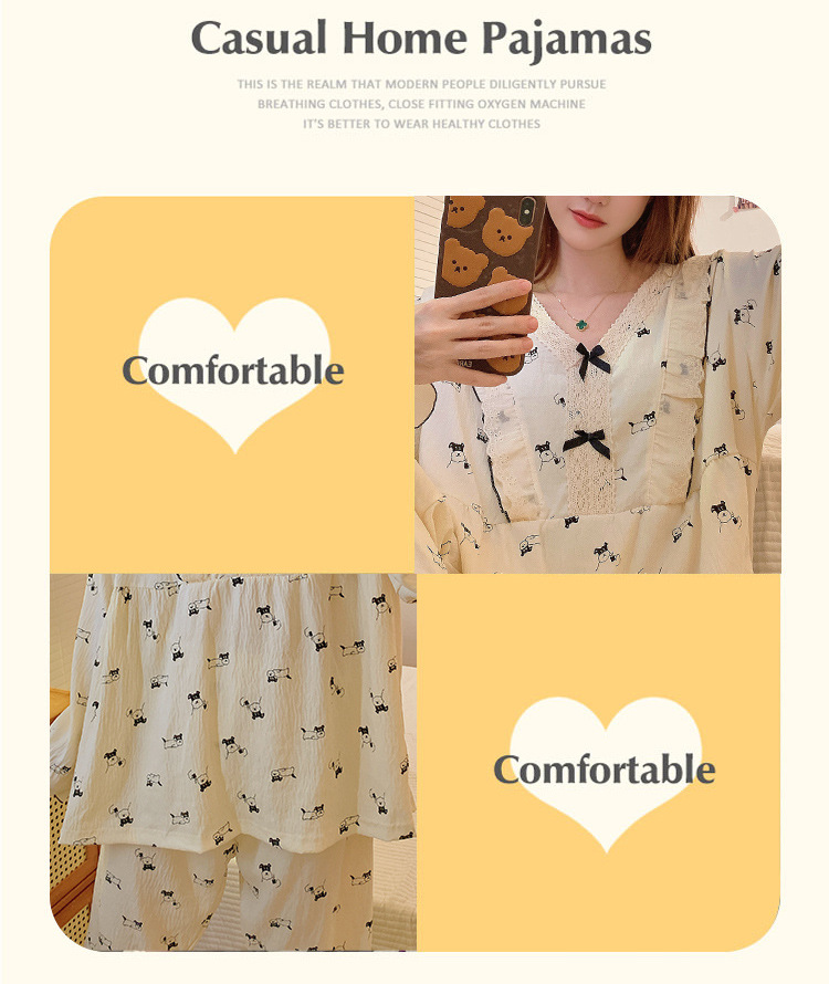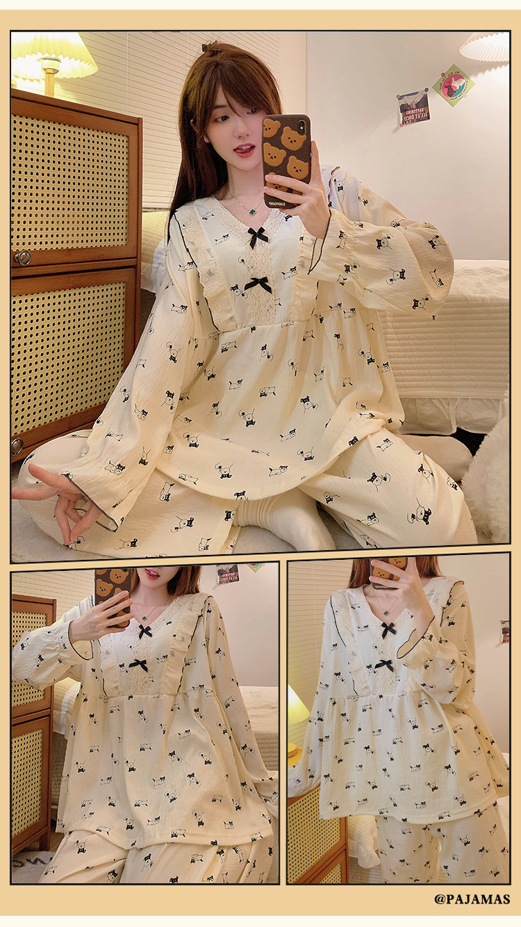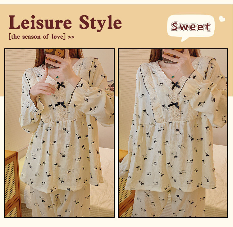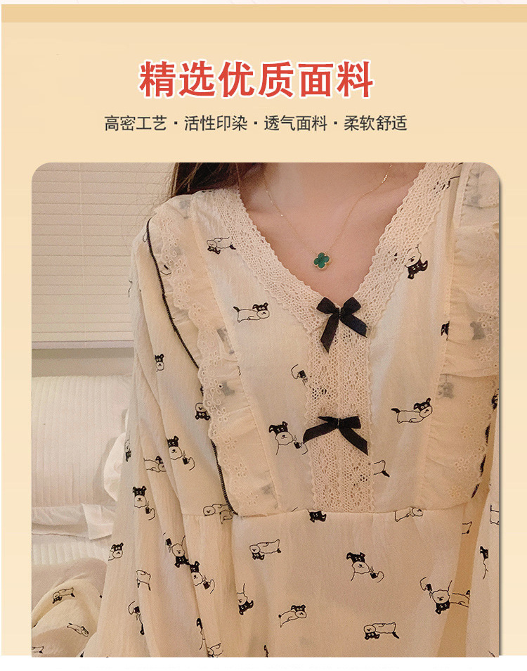 云朵棉波点小狗睡衣女款春秋季长袖长裤ins风可爱学生家居服套装