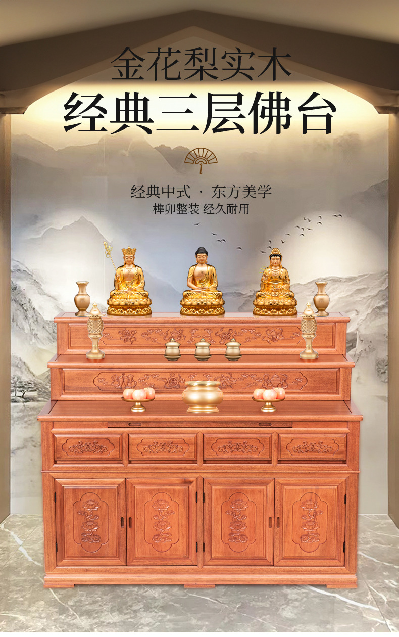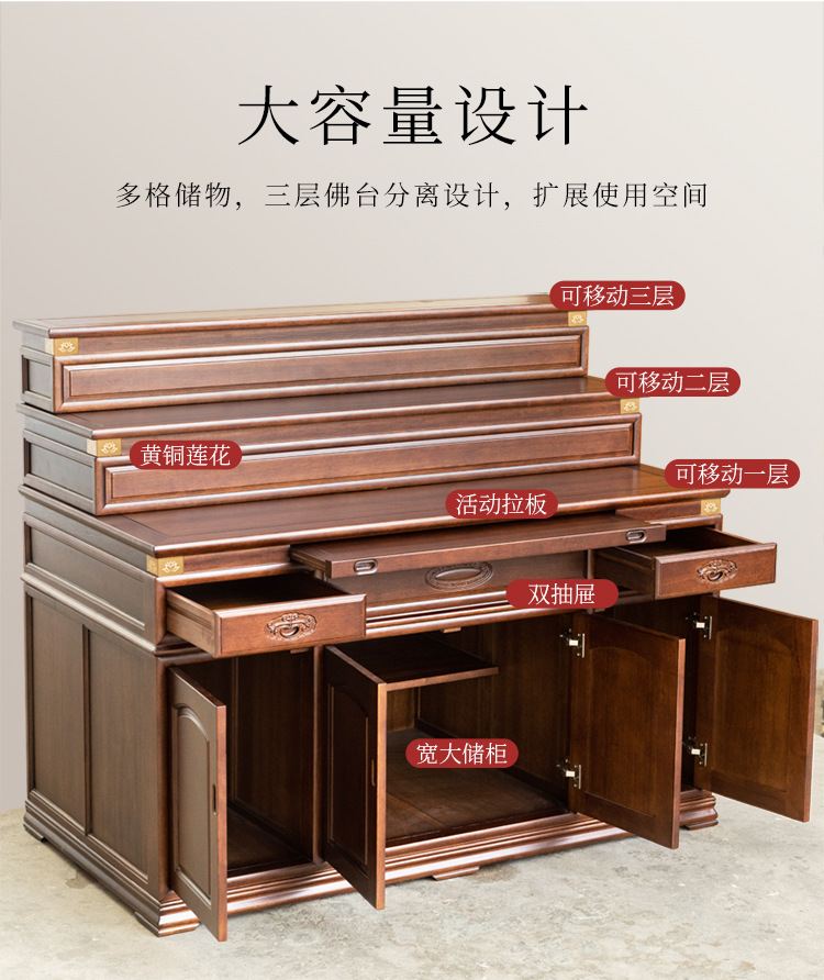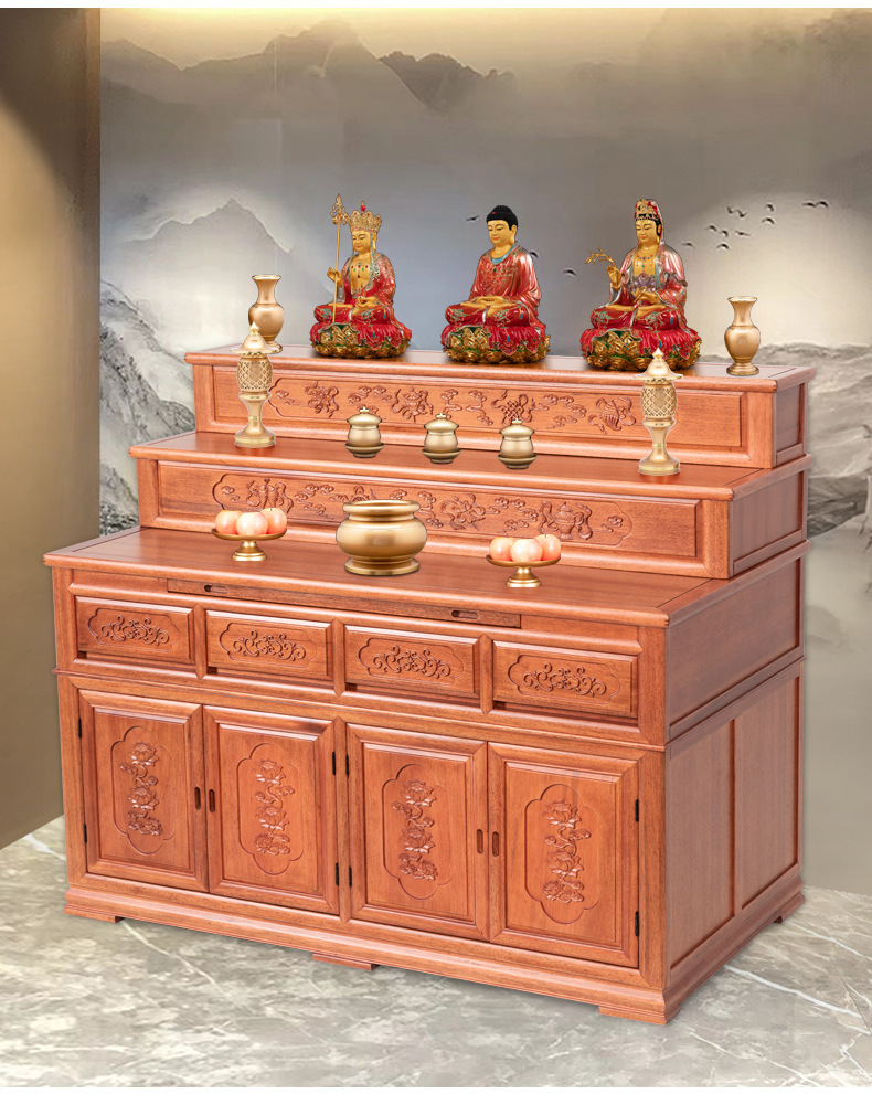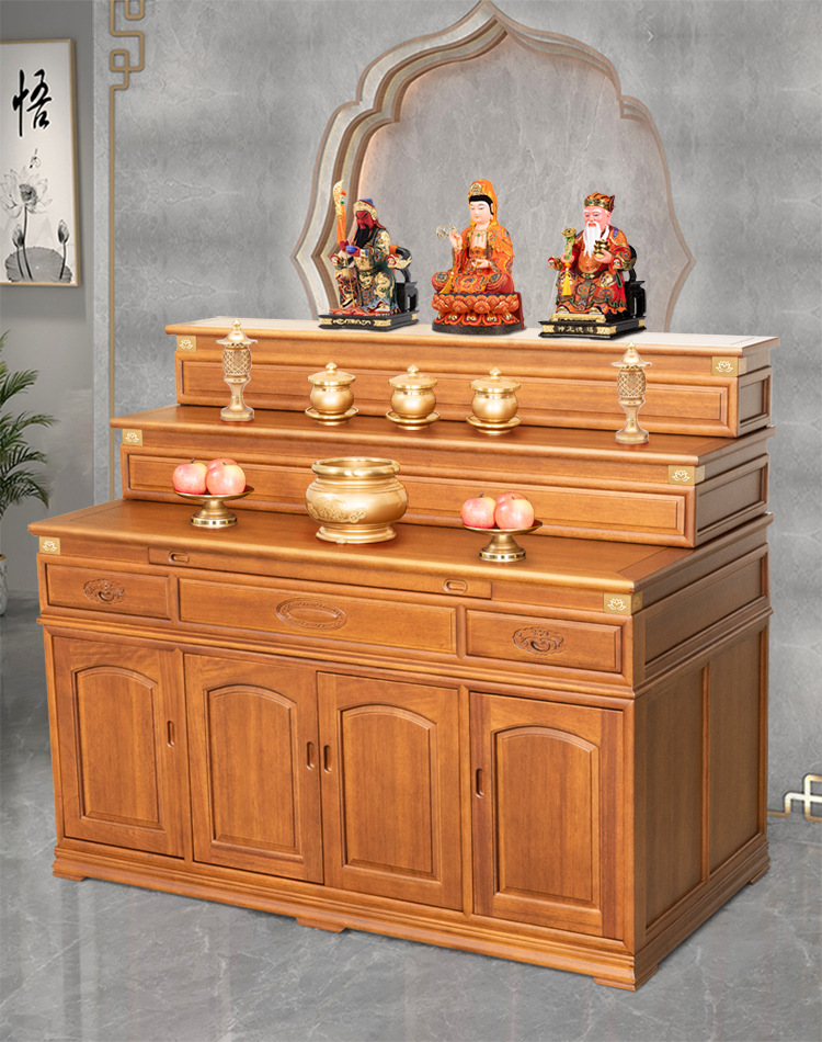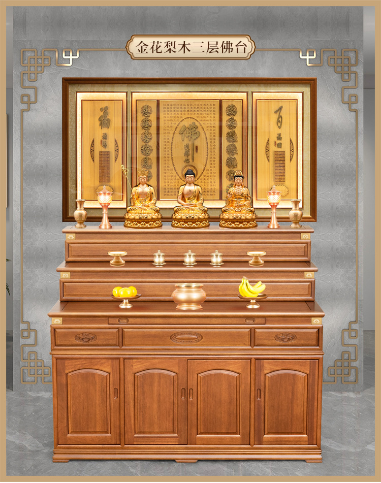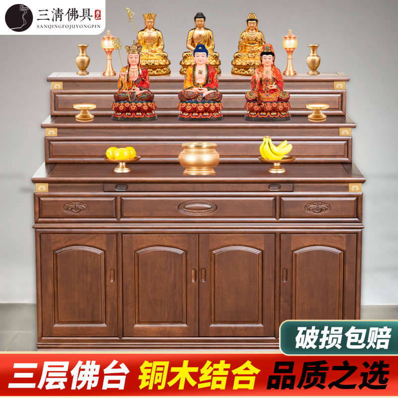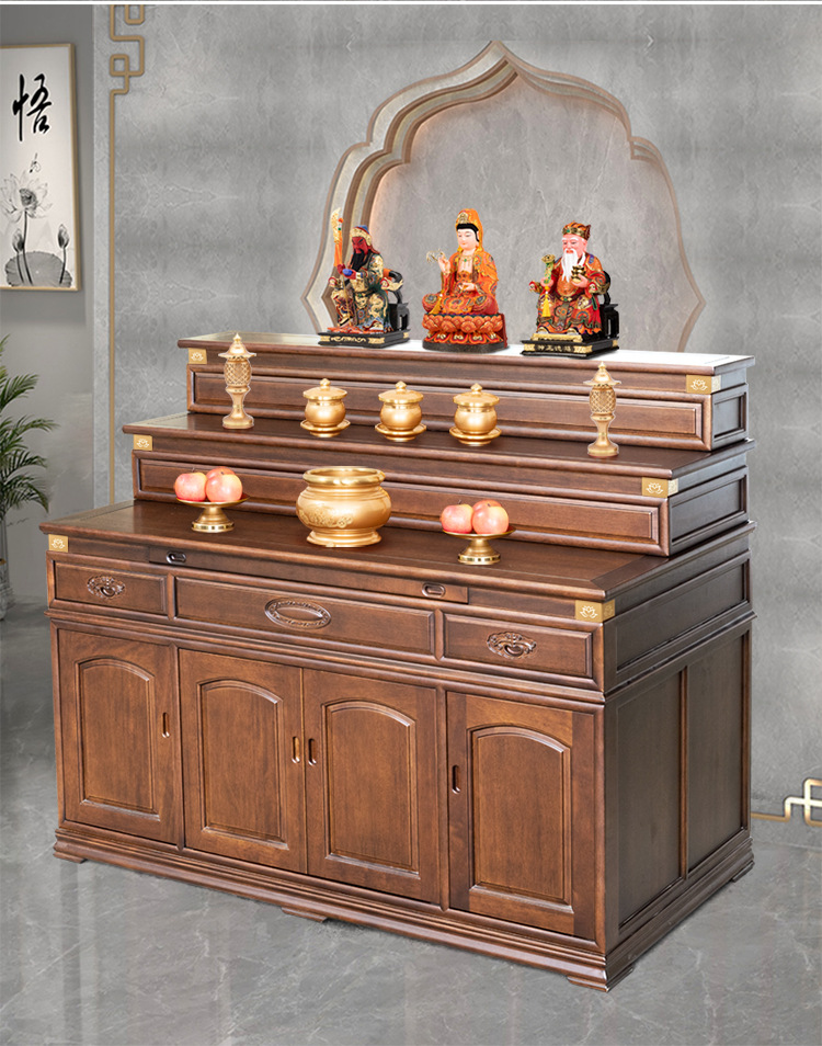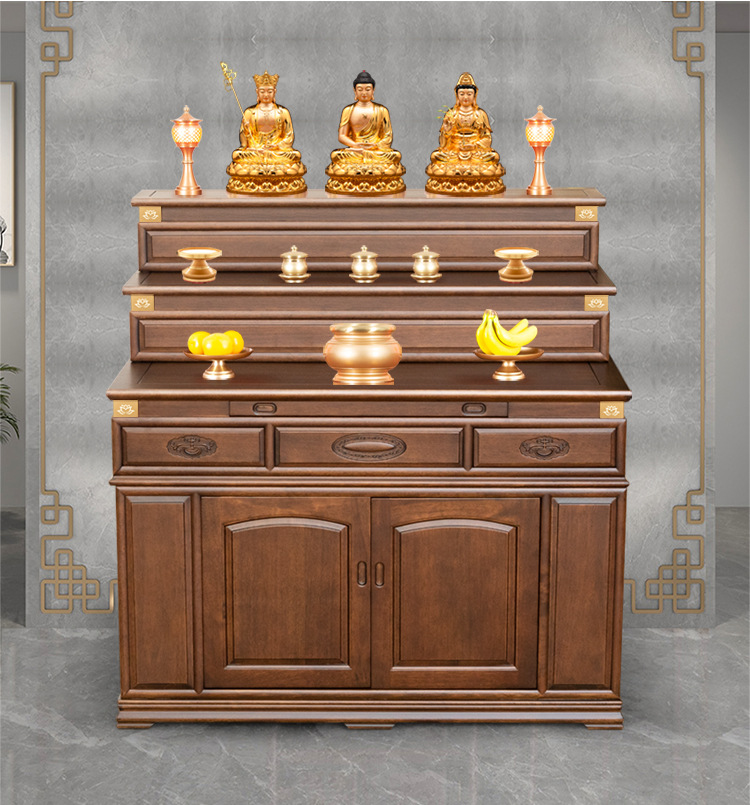 W 7木の仏台の3階はテーブルの家庭用の香案台の多層の仏壇の階段式の神台の仏堂の階段の仏陀の箱に供えます。