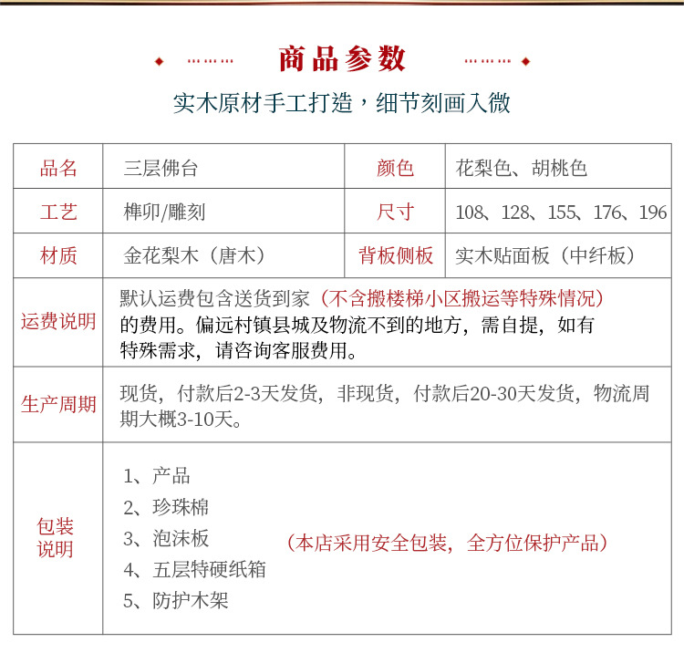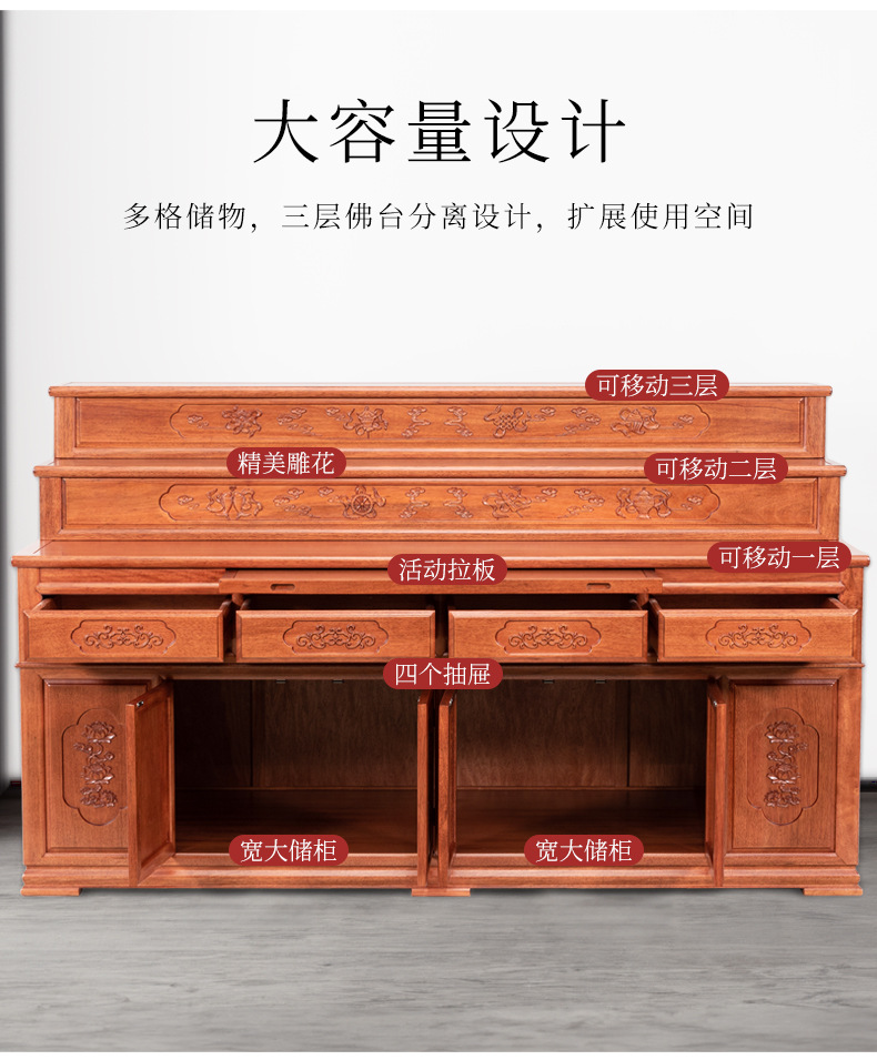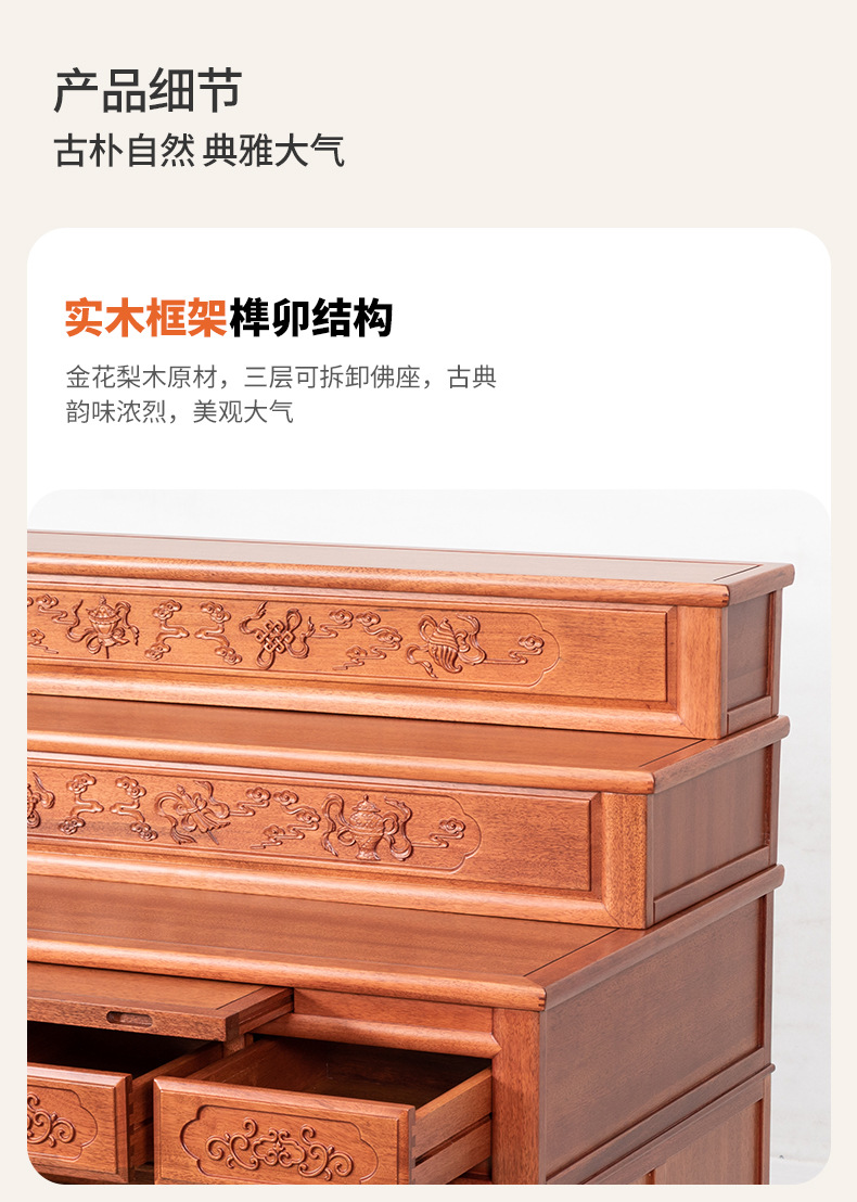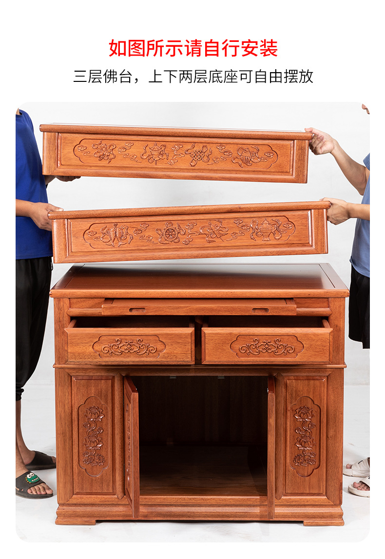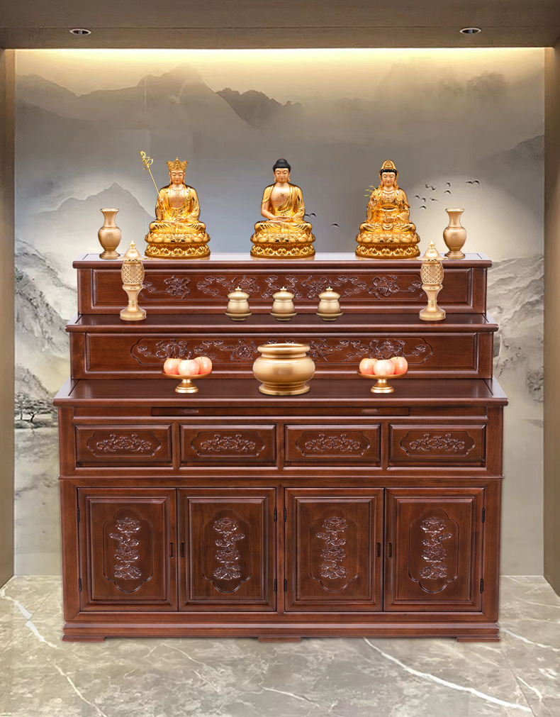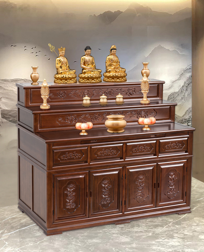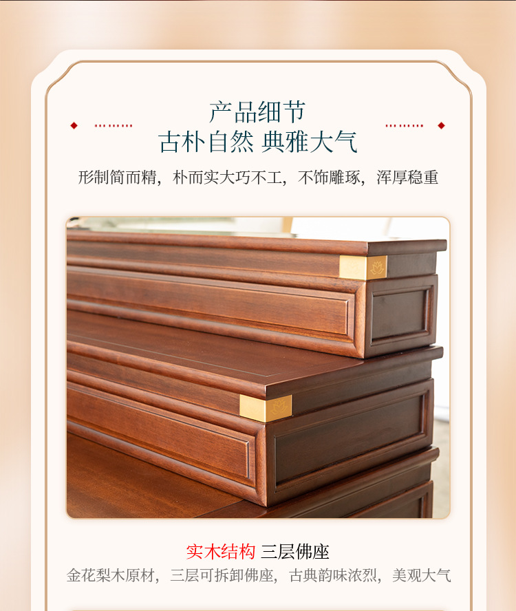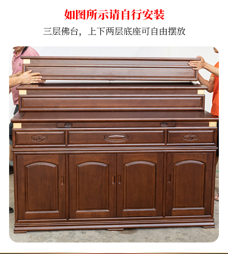 W 7木の仏台の3階はテーブルの家庭用の香案台の多層の仏壇の階段式の神台の仏堂の階段の仏陀の箱に供えます。