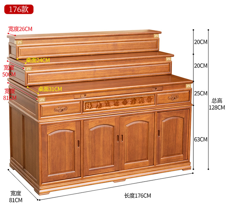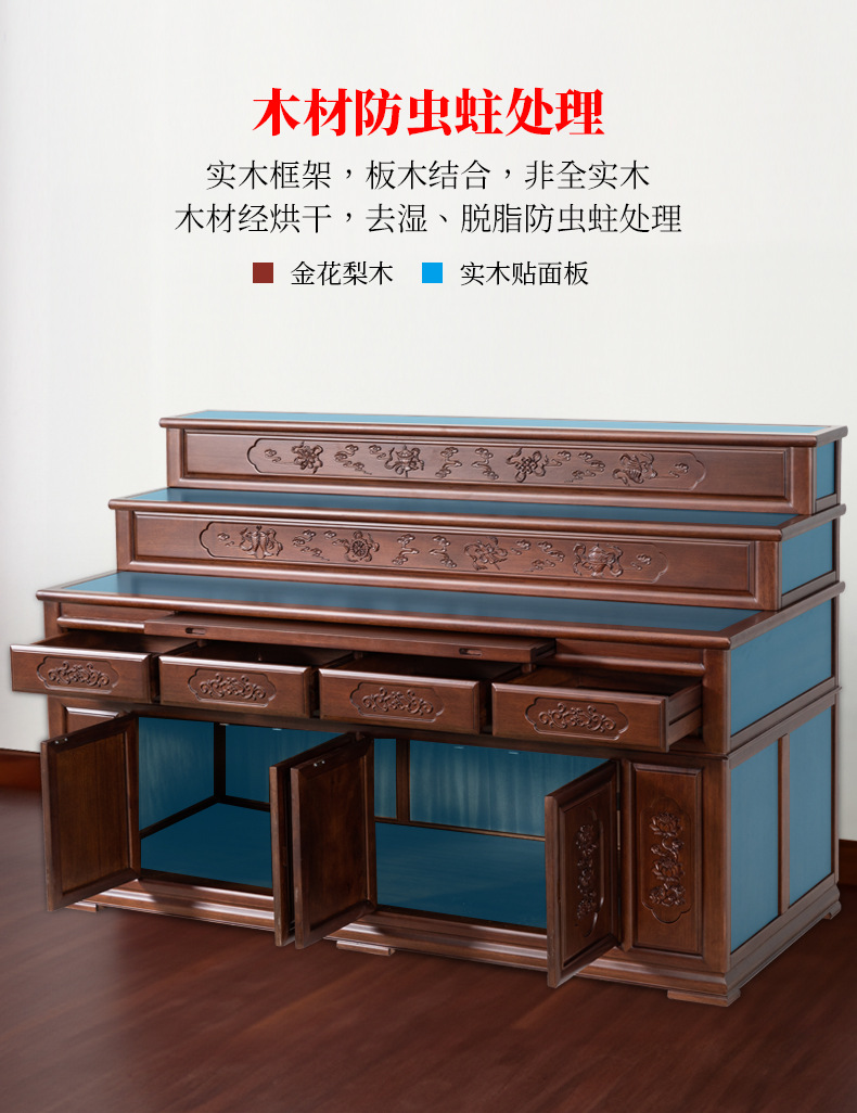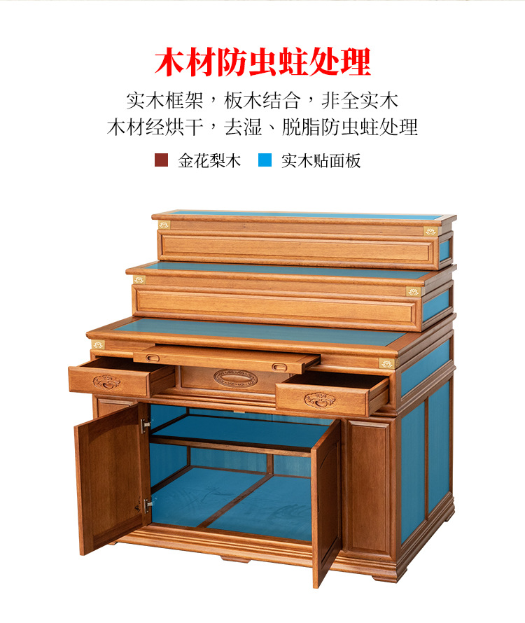 木造の仏壇の三階はテーブルの家庭用の香案台の多層の仏壇の階段式の神台の仏堂の階段の仏壇を提供します。