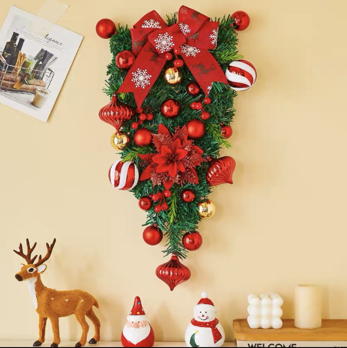 2025 クロスボーダー人気クリスマスツリークリスマスリースクリスマス装飾吊り下げ籐ペンダントホテルショッピングモール