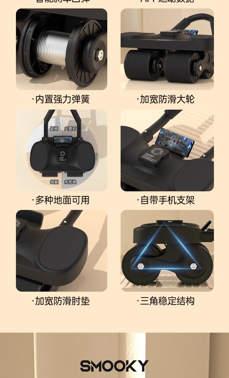 SMOOKY新型四輪知能健腹輪自動スプリングバック男女巻き腹輪体重管理腹筋健腹輪