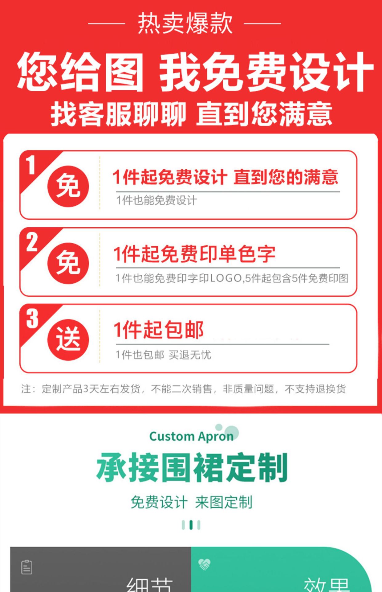 広告エプロンロゴのカスタマイズは無料で効果図を出すことができます。