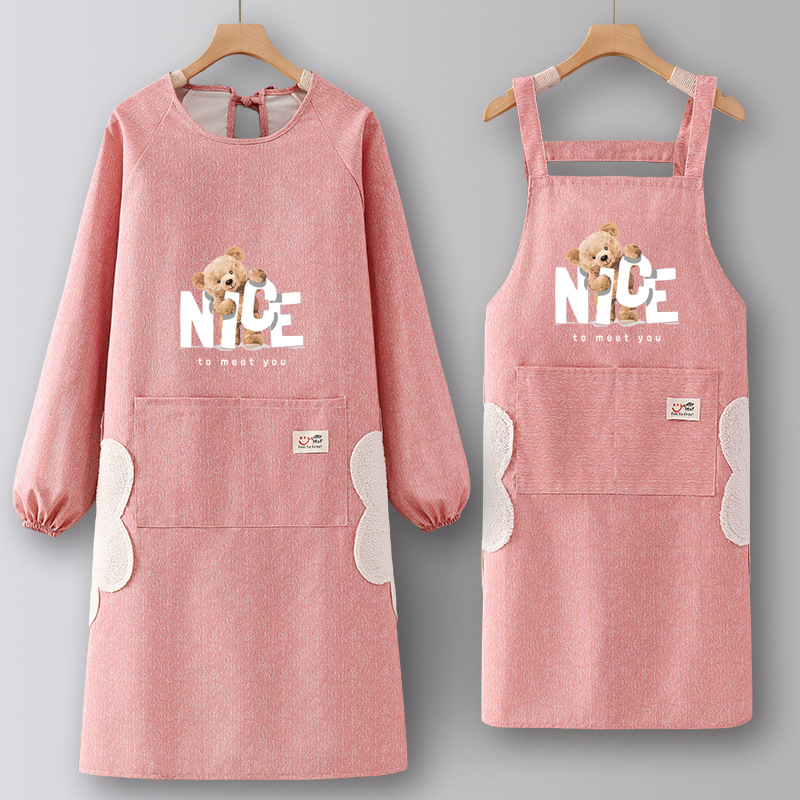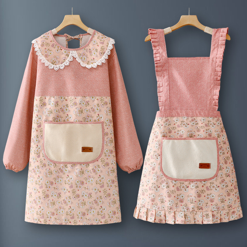 純綿エプロン家庭用キッチン2024新型ネット赤長袖ファッション料理飲食専用カバー作業服