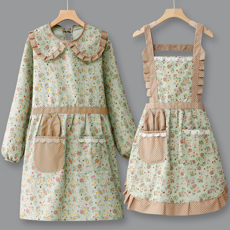 エプロン 長袖 純綿 キッチン 家庭料理用 ネット人気同型 カバーオール 女性用 2025年新作 飲食店専用作業服