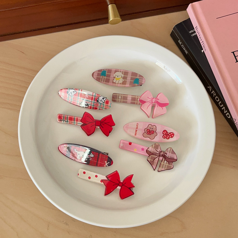 楕円シンプルな格子蝶結びアクリルパッチ髪飾りdiy手作り材料部品