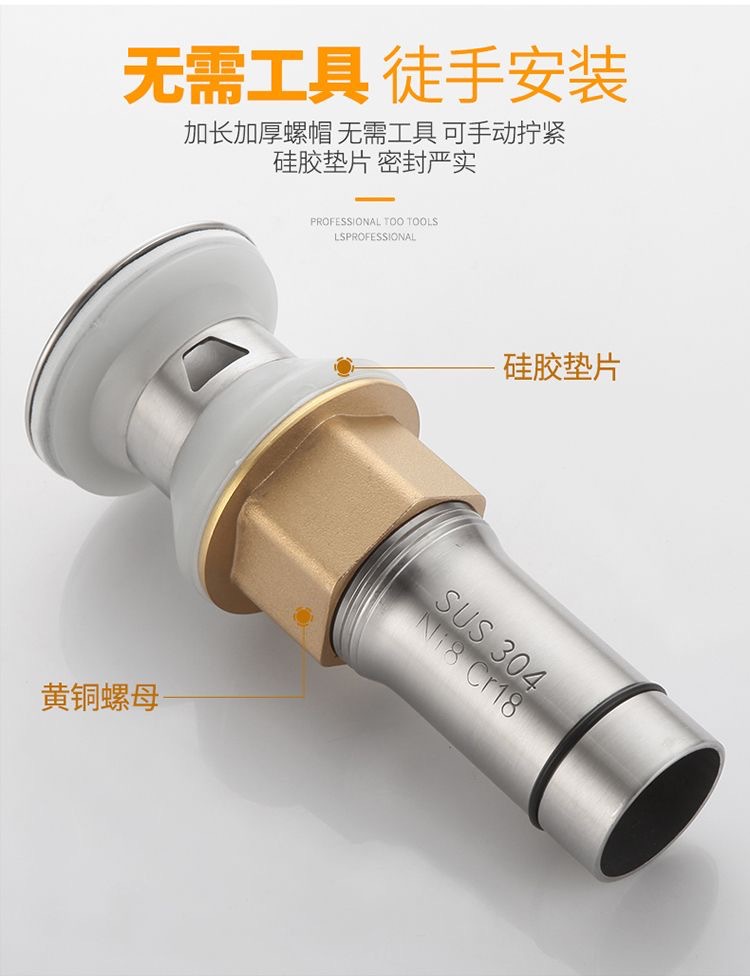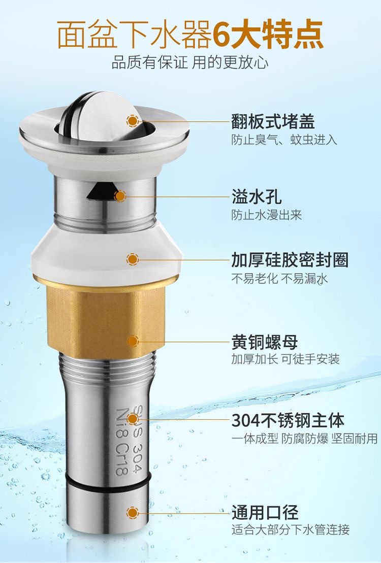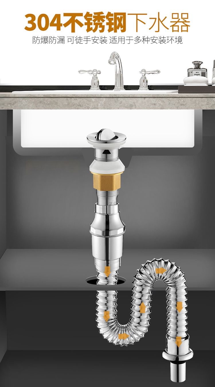304下水管排水管套装台盆洗脸池面盆洗脸盆有孔下水器配件弹跳