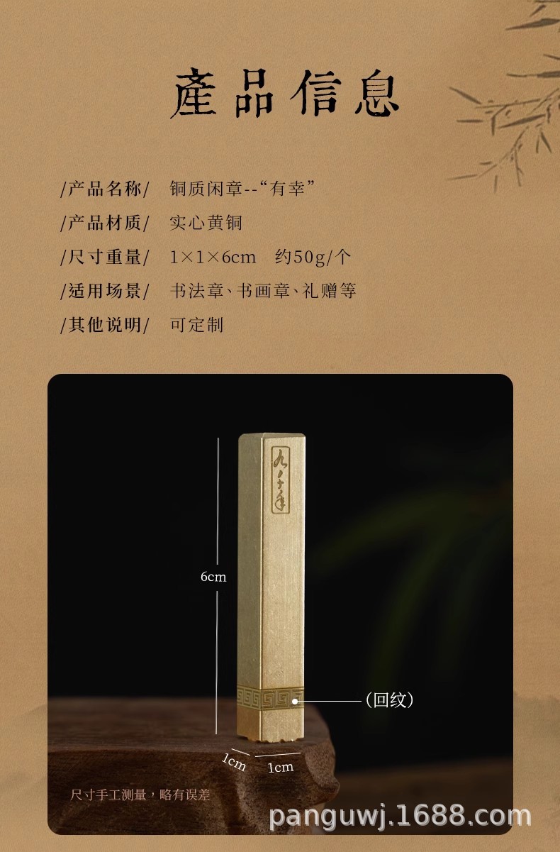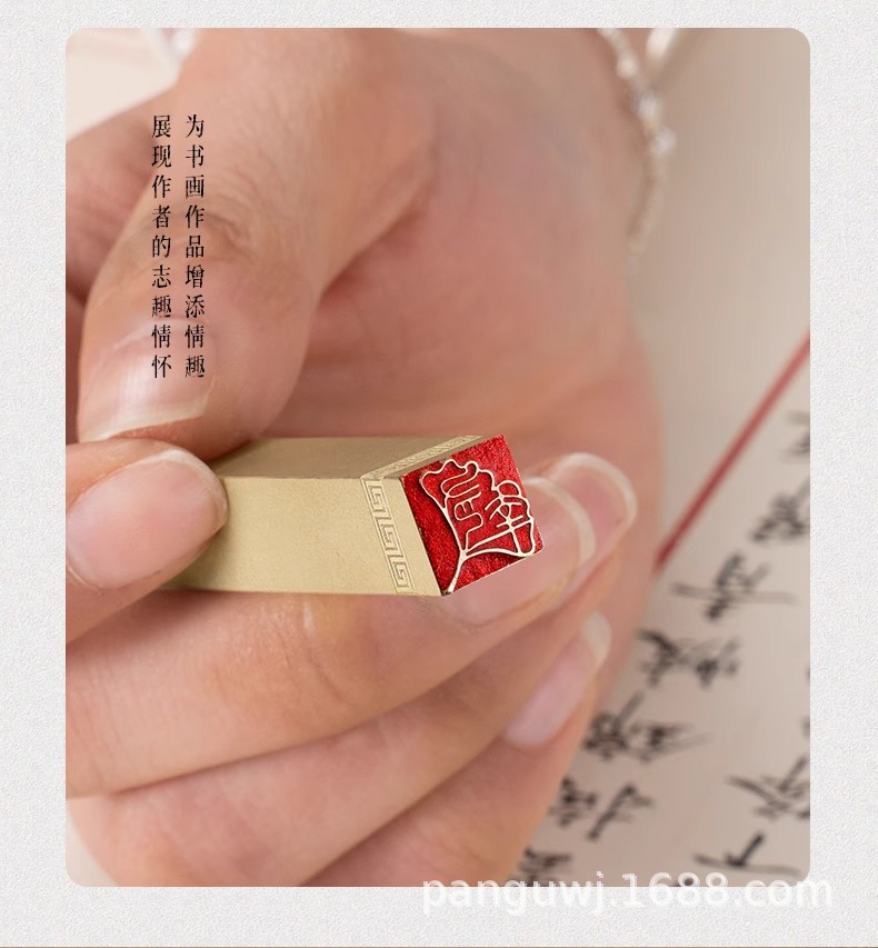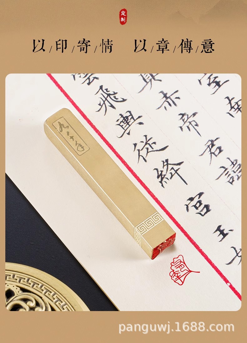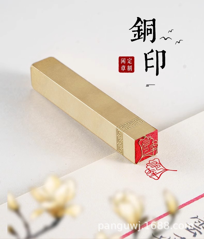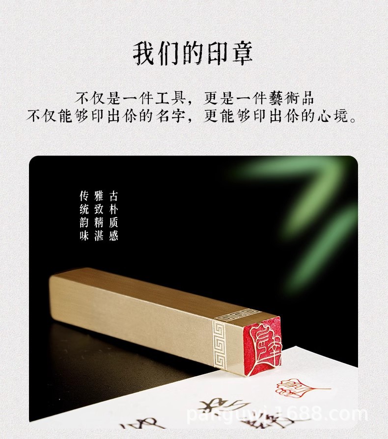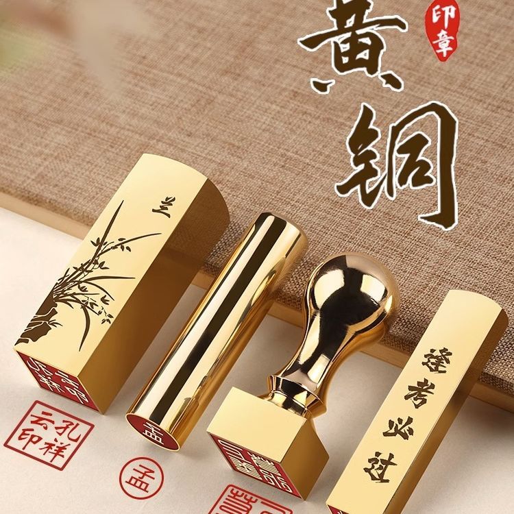 中実黄銅印方章彫刻印鑑黄銅章篆刻書道閑章名前私章金属銅印卸売り