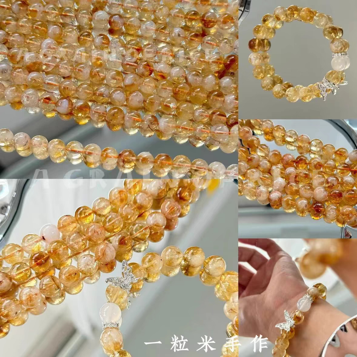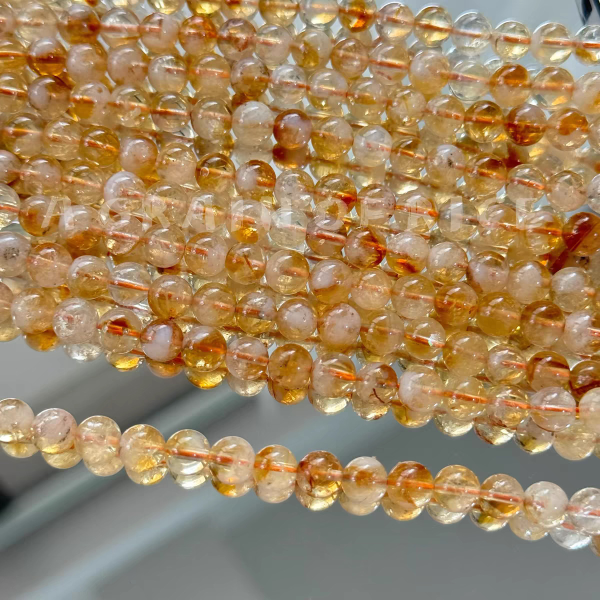 【黄水晶】天然黄水晶白水晶玉散珠diy手作りビーズブレスレットのネックレス材料