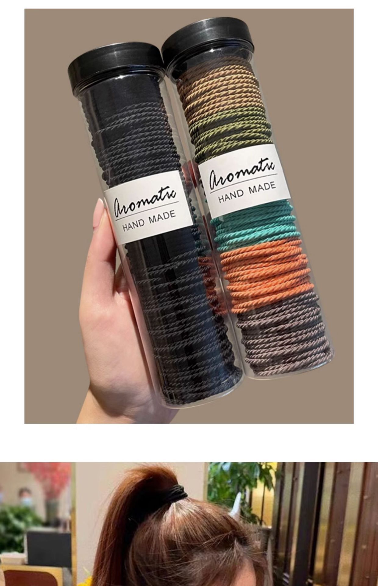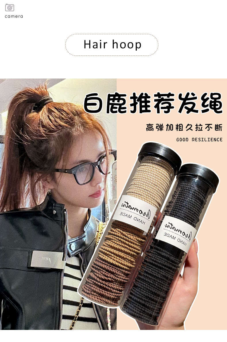 韓国の高弾力ヘアロープは継ぎ目がなくて、太くて、黒いゴムが髪のひもを刺します。