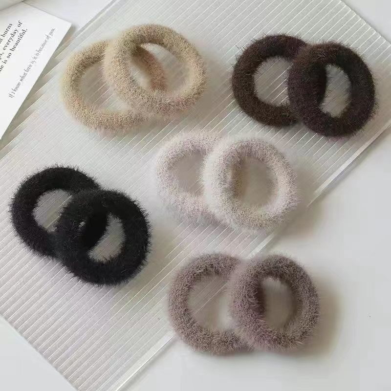 秋冬新款发圈diy仿貂毛发绳糖果色毛绒毛巾圈简约高弹力头绳批发
