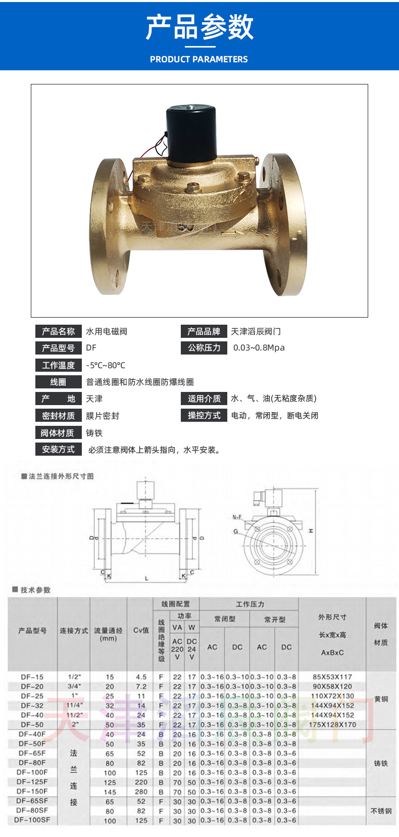 水用電磁弁DF常開型化学工業水利鋳鉄電動常閉型電源オフ単方向電磁弁
