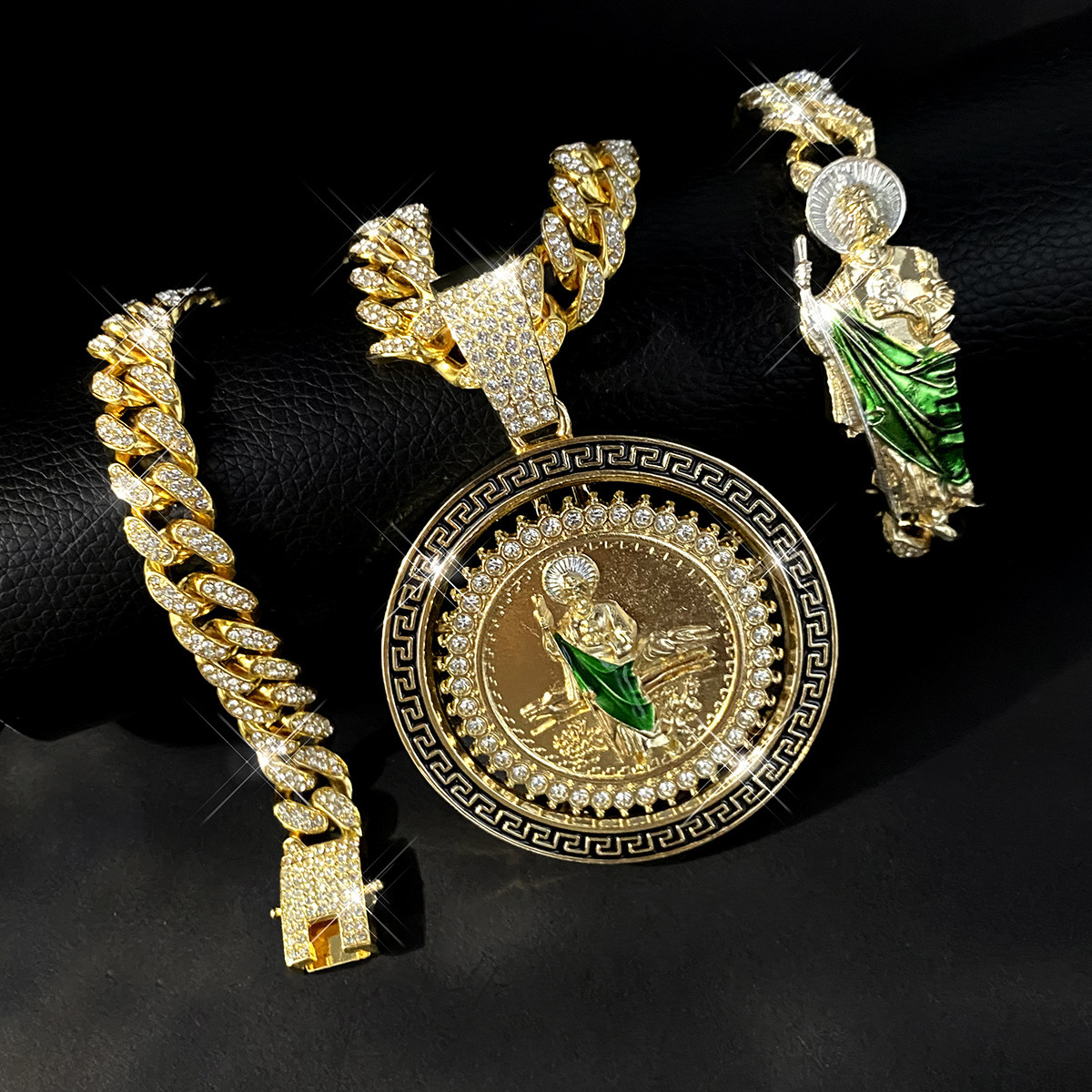 クロスボーダーホットスタイルインニッチトレンディメンズヒップホップスタイルメンズ合金フルダイヤモンドトレンディ回転聖ユダペンダントネックレス