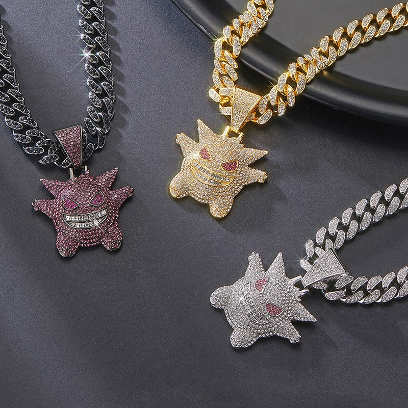 創意百合合金満ドリルのスキューバチェーン漫画のヒップホップダイヤモンドの妖精耿鬼ペンダントネックレス卸売り