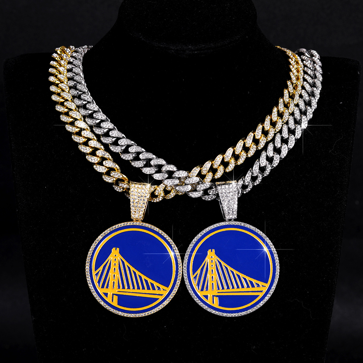 欧美跨境热卖合金滴油NBA球队吊坠时尚个性嘻哈满钻古巴链项链