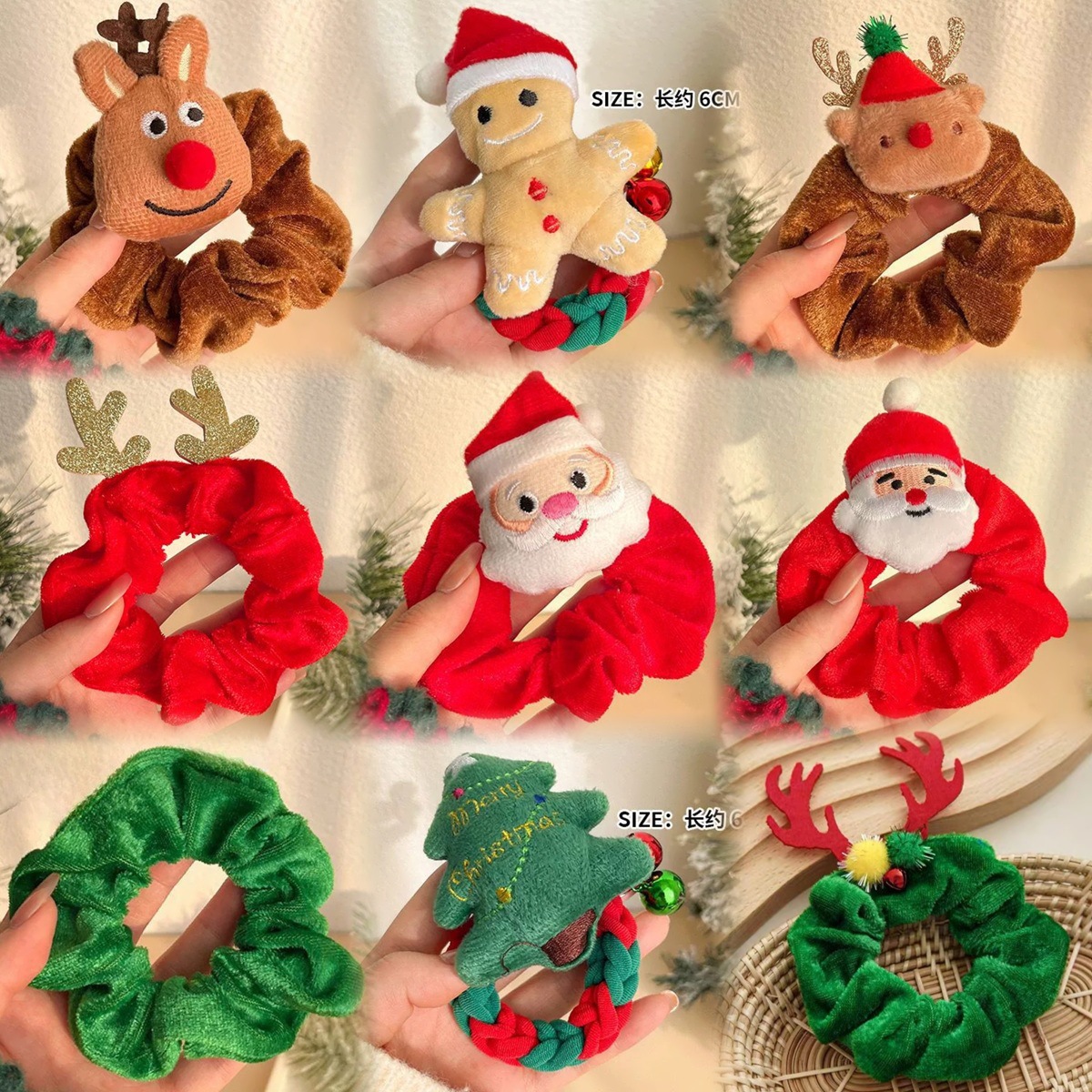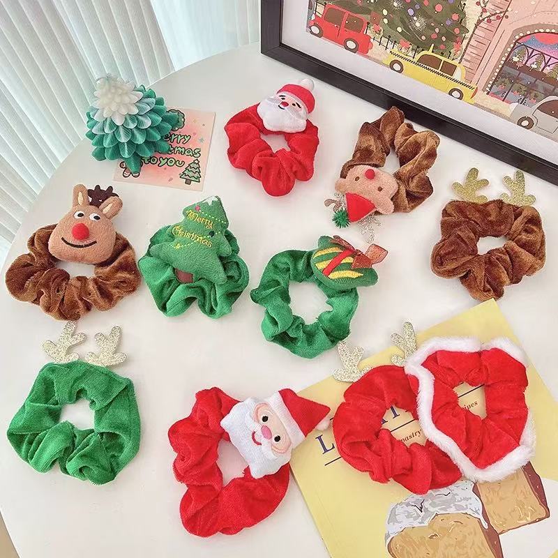 跨境圣诞节新款红色圣诞老人发饰可爱麋鹿大肠发圈发绳儿童饰品