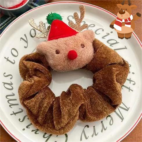 圣诞节发圈发饰卡通小鹿节日氛围跨境编织发绳大肠装扮可爱头饰