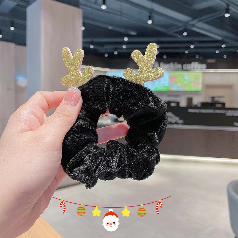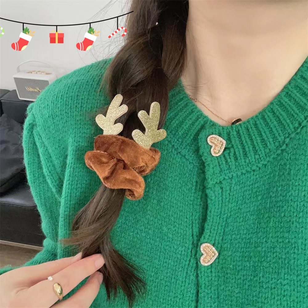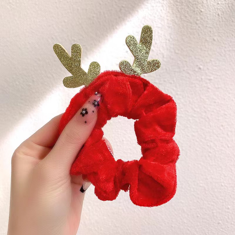圣诞装饰品毛绒大肠发圈皮筋女扎头发秋冬鹿角头绳发饰圣诞节头饰