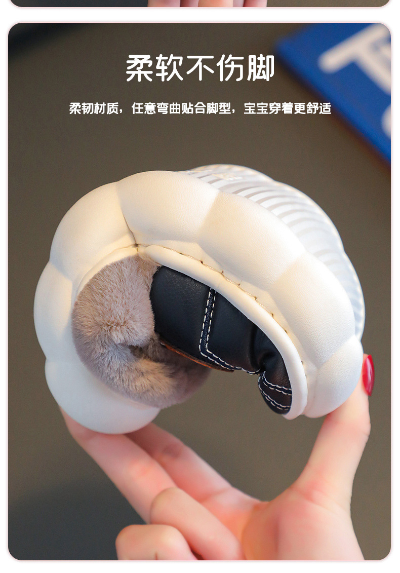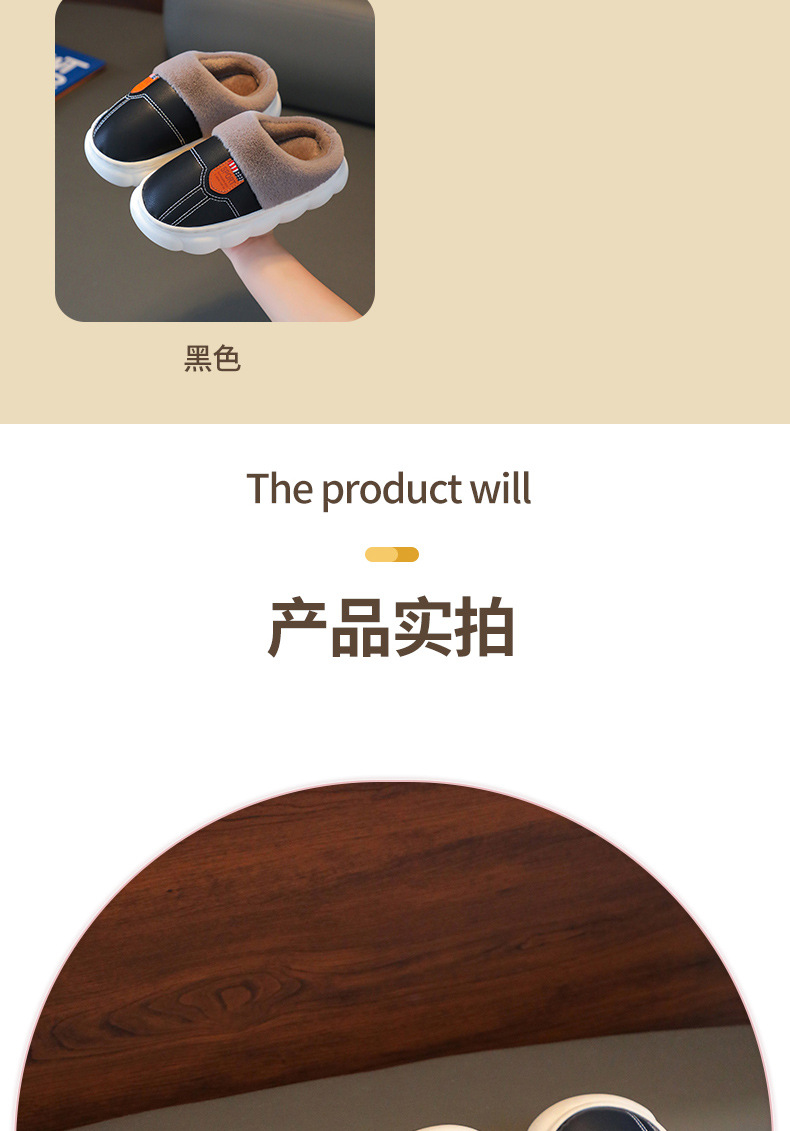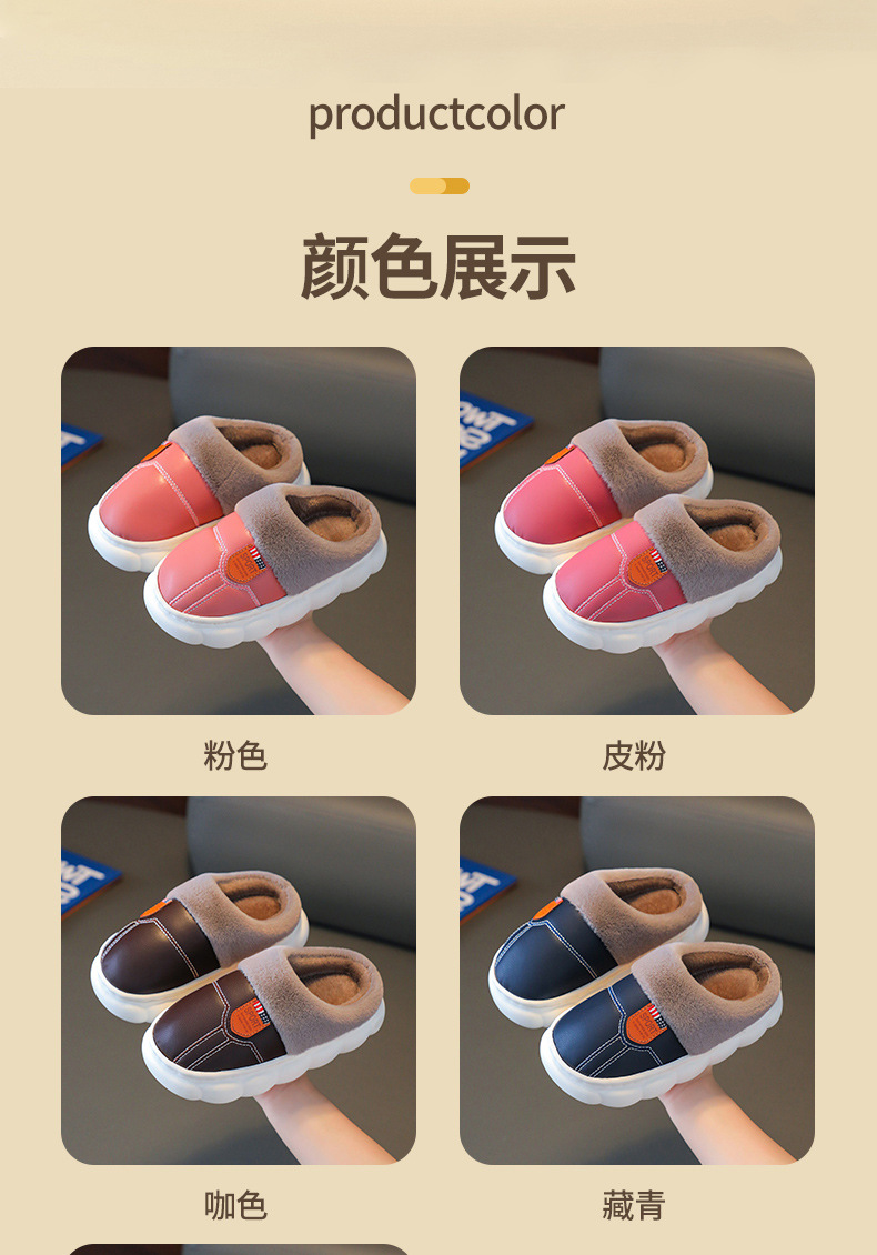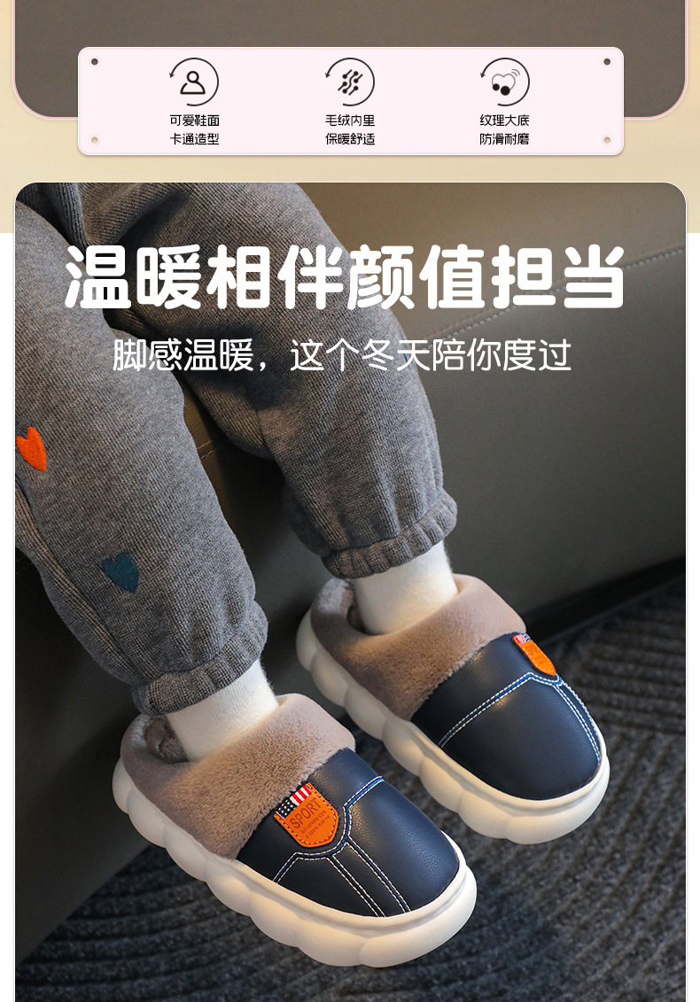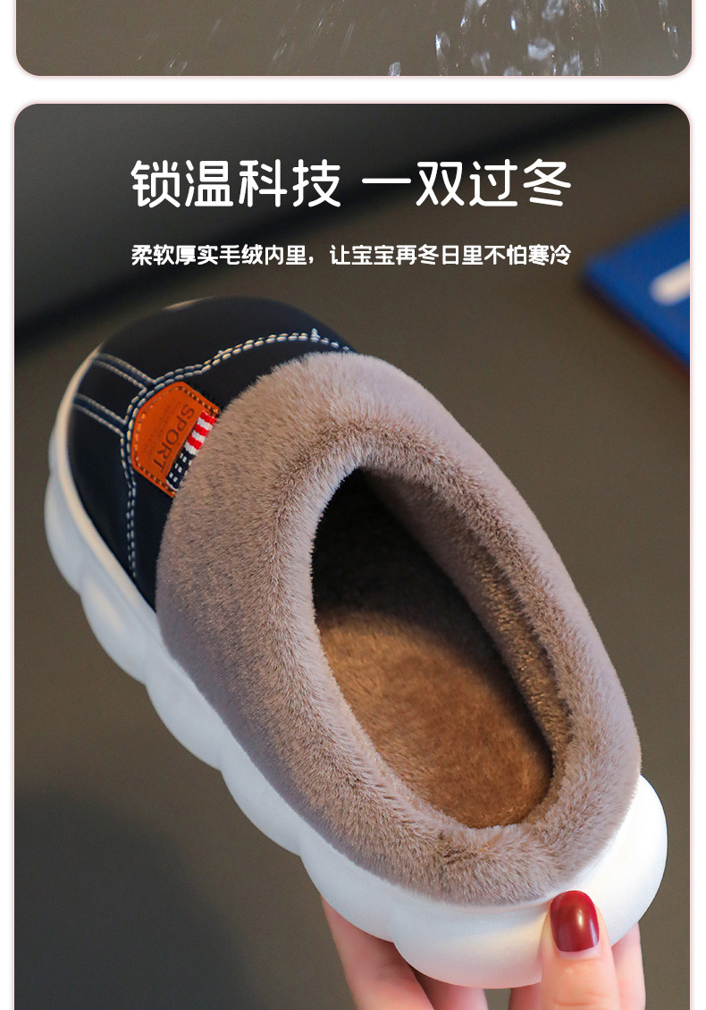 儿童拖鞋冬季男童棉拖鞋女童宝宝室内PU皮面防水小孩家居学生毛拖