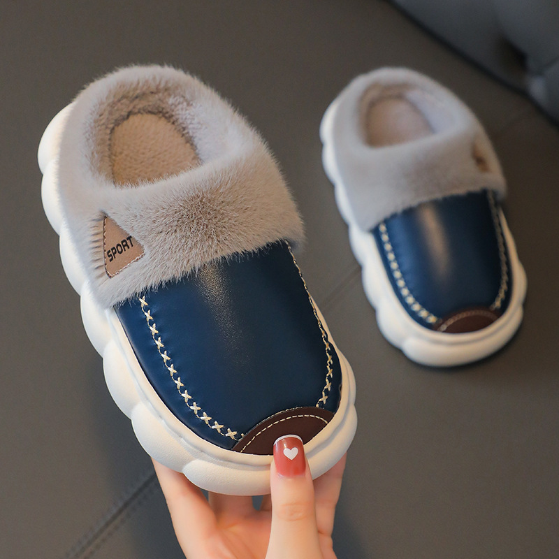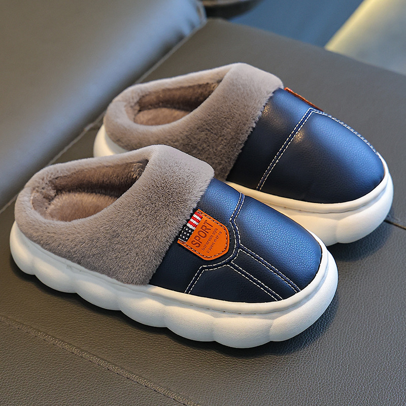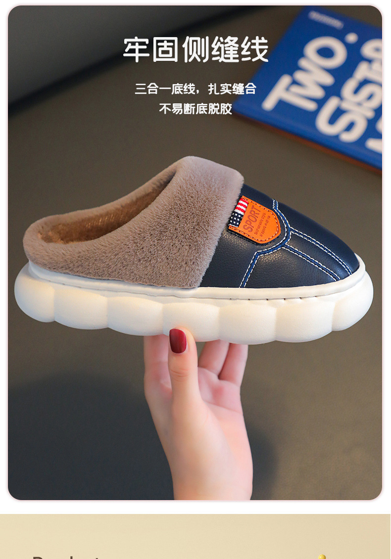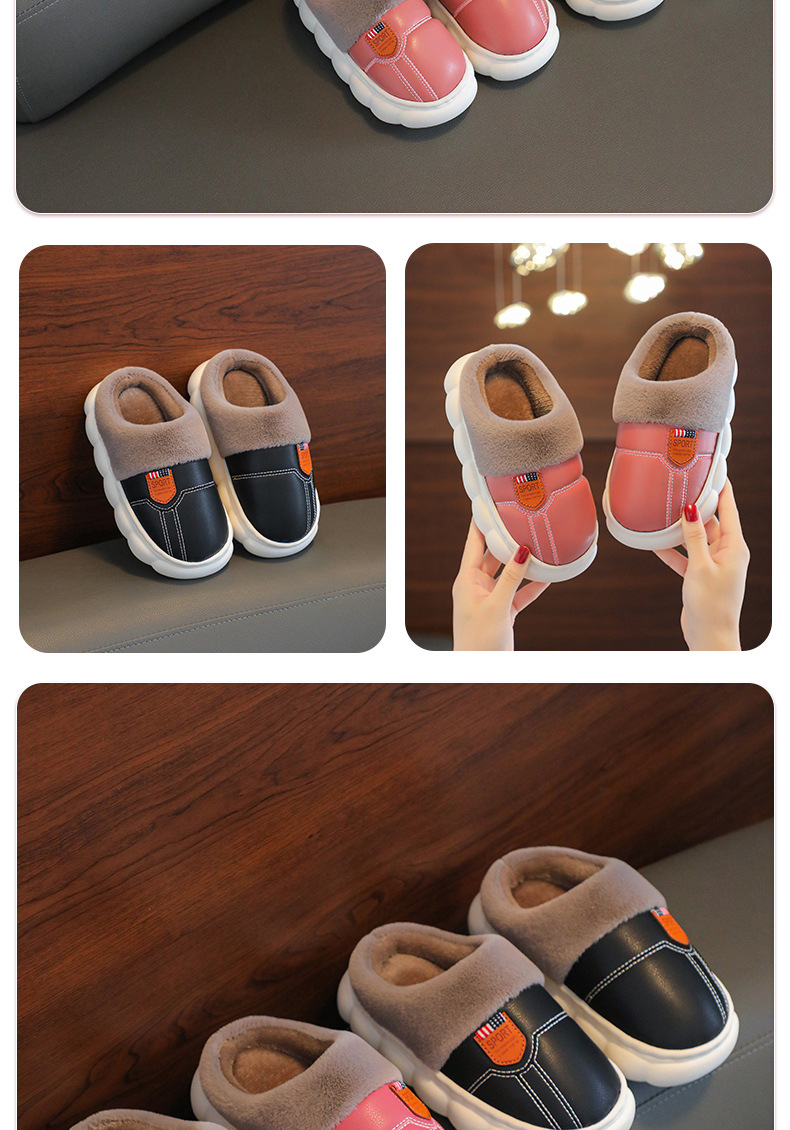 子供用綿スリッパpu皮防水柔らかい底滑り止めベルベット厚い親子成人カップルの家の冬の保温