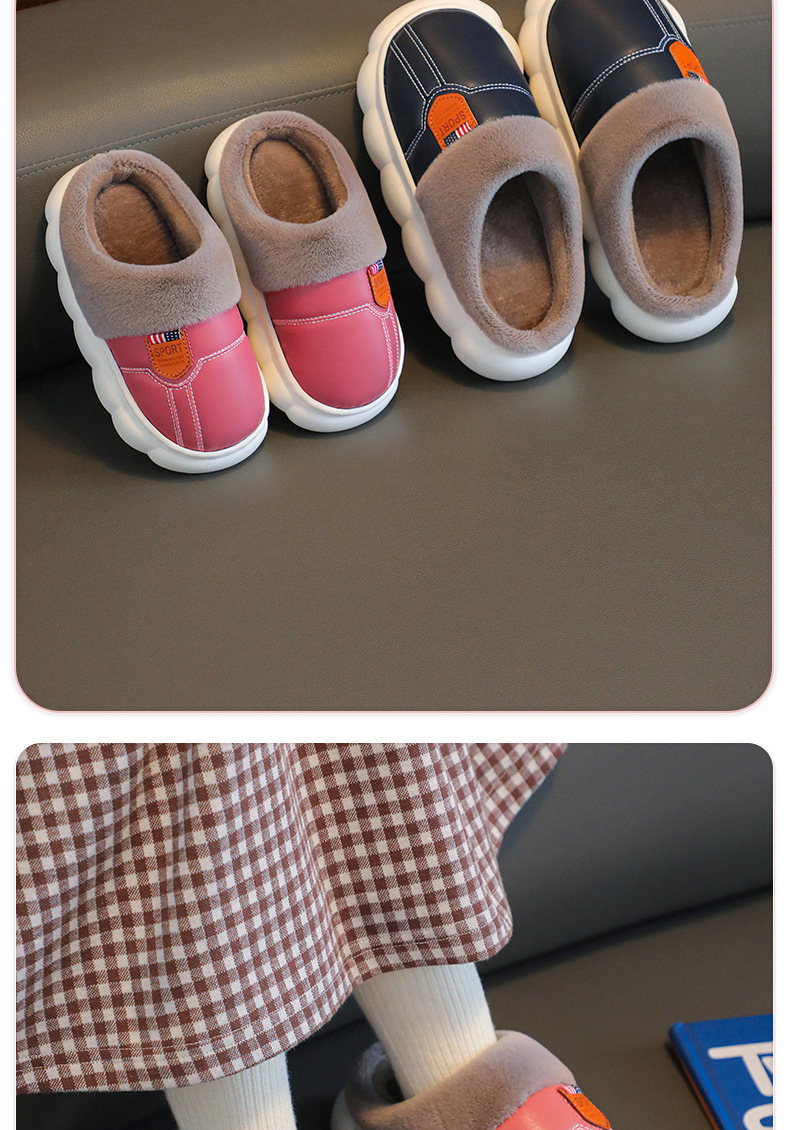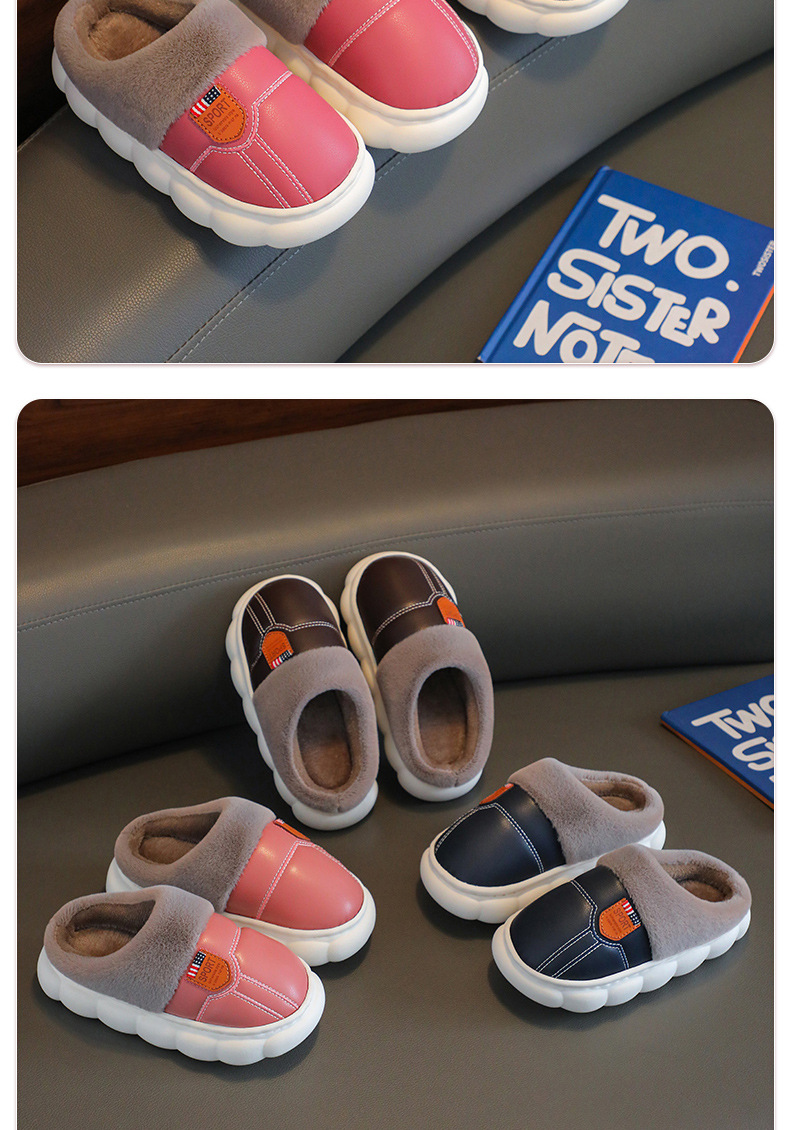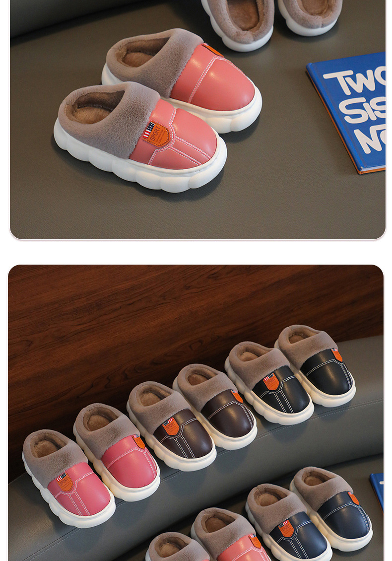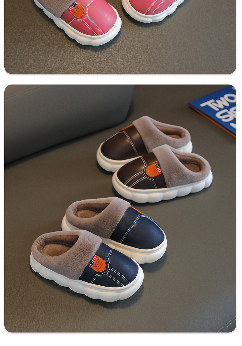 子供用綿スリッパpu皮防水柔らかい底滑り止めベルベット厚い親子成人カップルの家の冬の保温