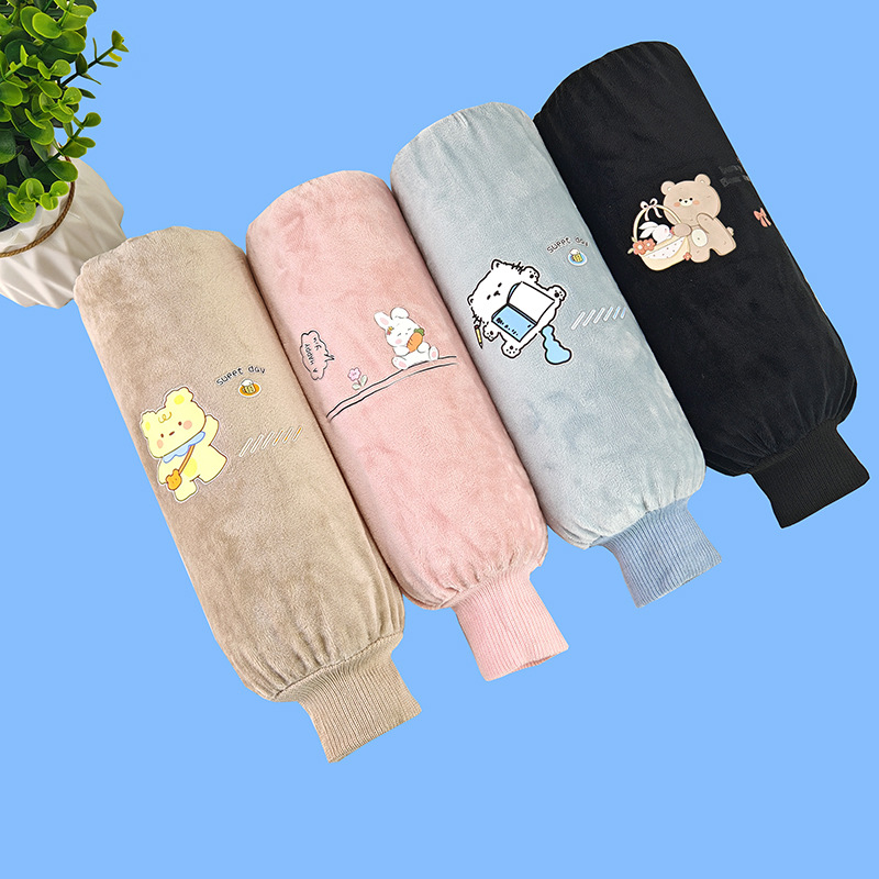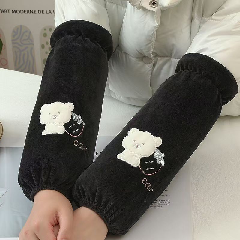 韩版绒布袖套女秋冬季成人工作防脏套袖头可爱学生羽绒服护袖长款
