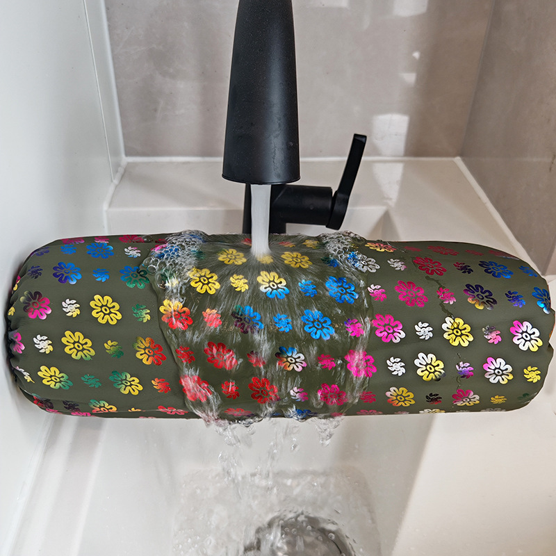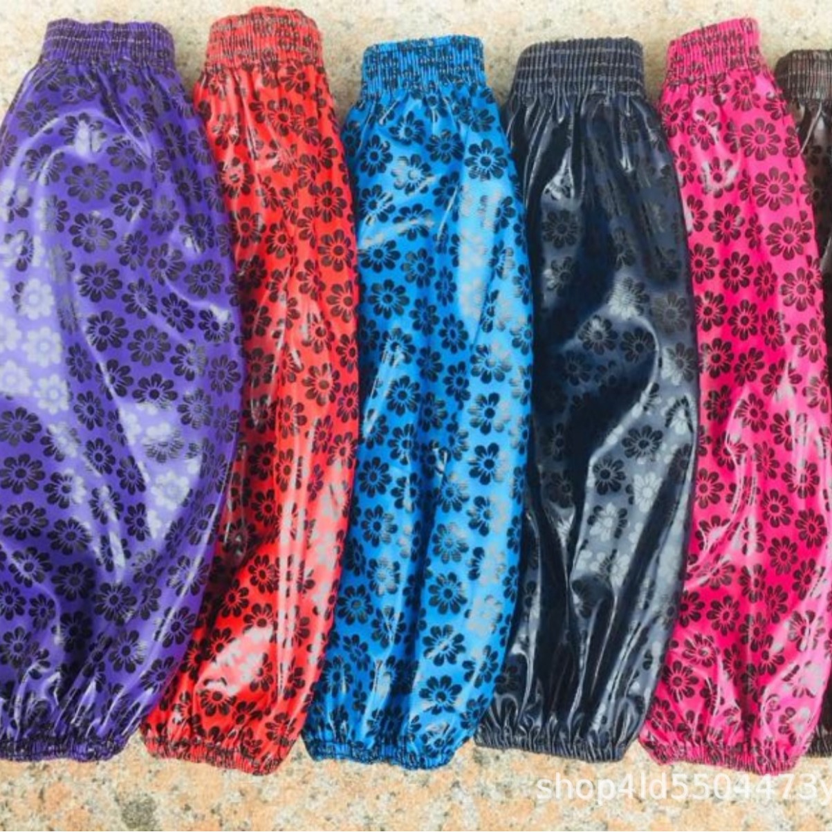 大人用ロング丈花柄防水袖カバー 冬用厚手サテン素材 防汚・防油 キッチン作業用保護袖 厚手