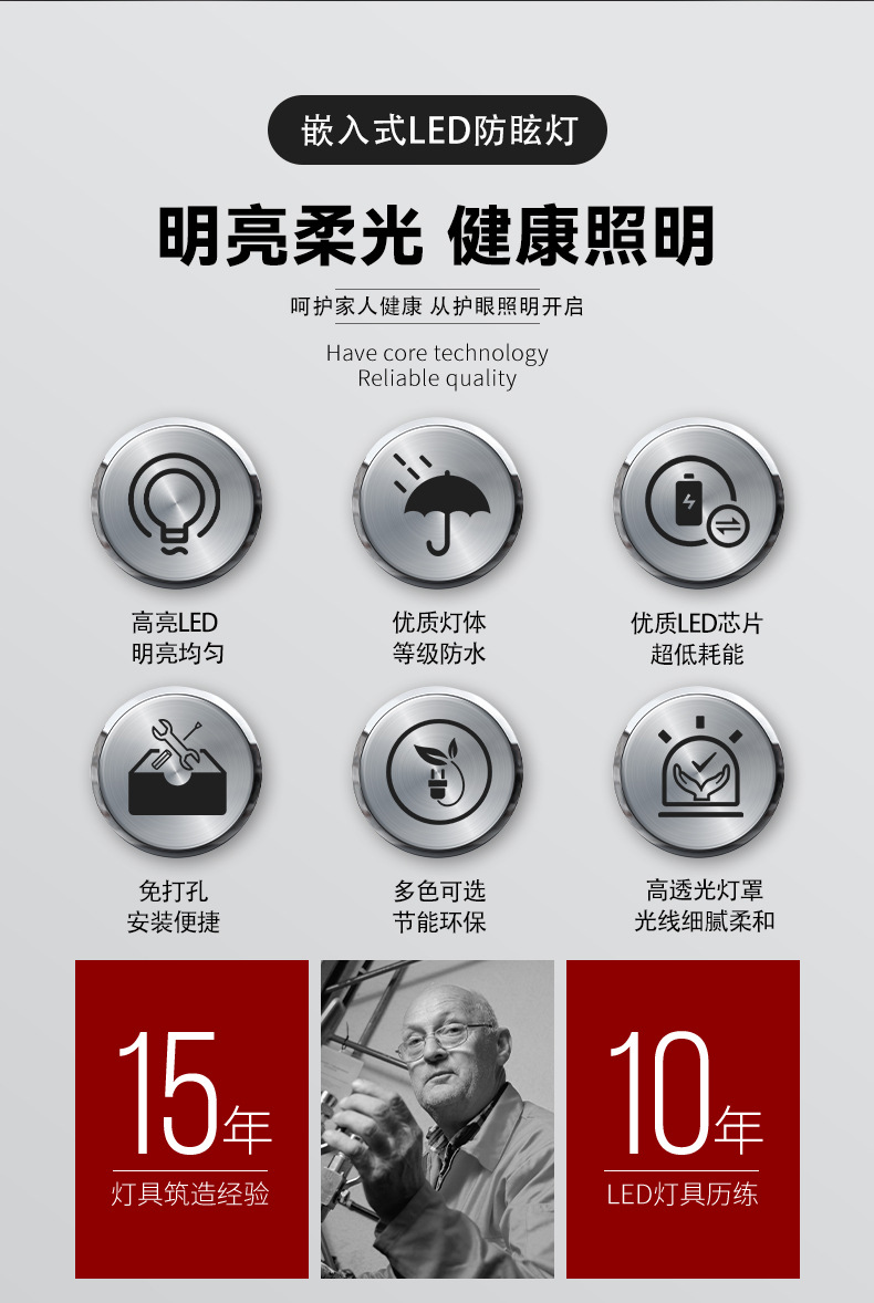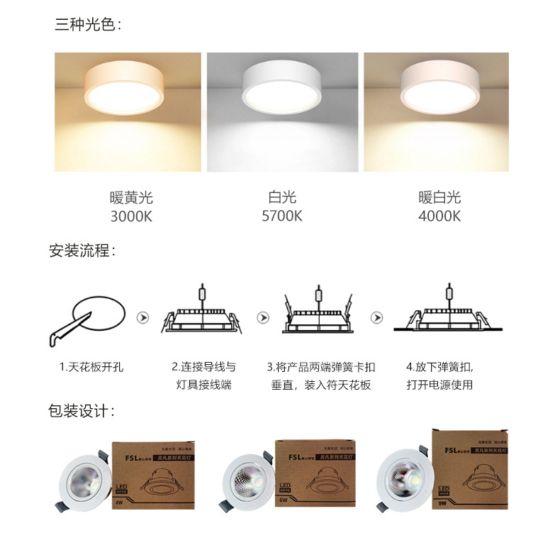 FSL仏山照明ledダウンライト6インチ天井灯家庭用埋め込み型防眩孔灯商场灯三色スポットライト
