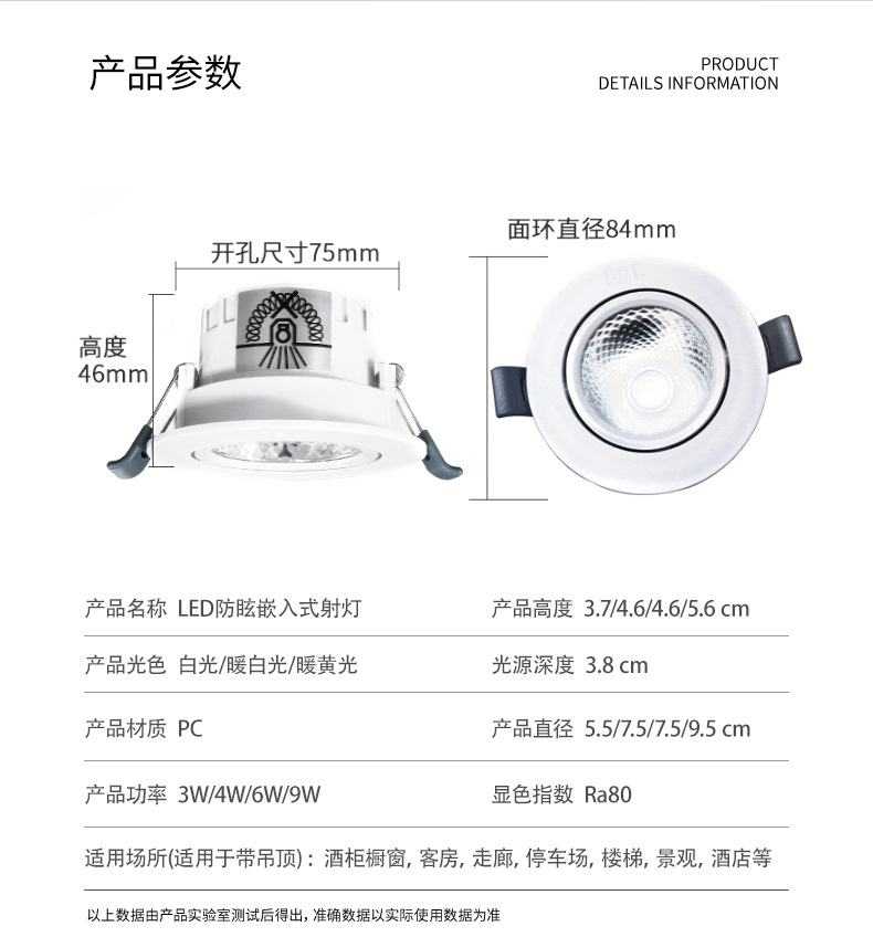 パワー 3W開口部Φ55mm,4w 開口部Φ75mm,6w 開口部Φ75mm,9w 開口部Φ95mm