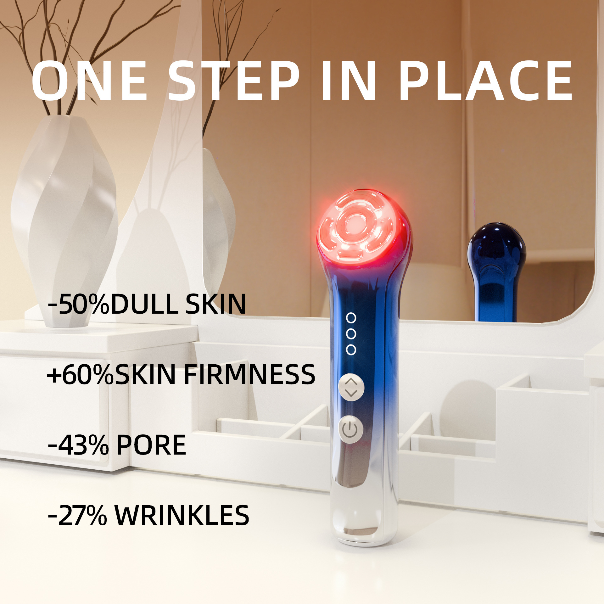 新しい無線周波数美容器の顔の引き伸ばして周波数計の家庭の赤い青い光の超音波の導入器を引き締めます。