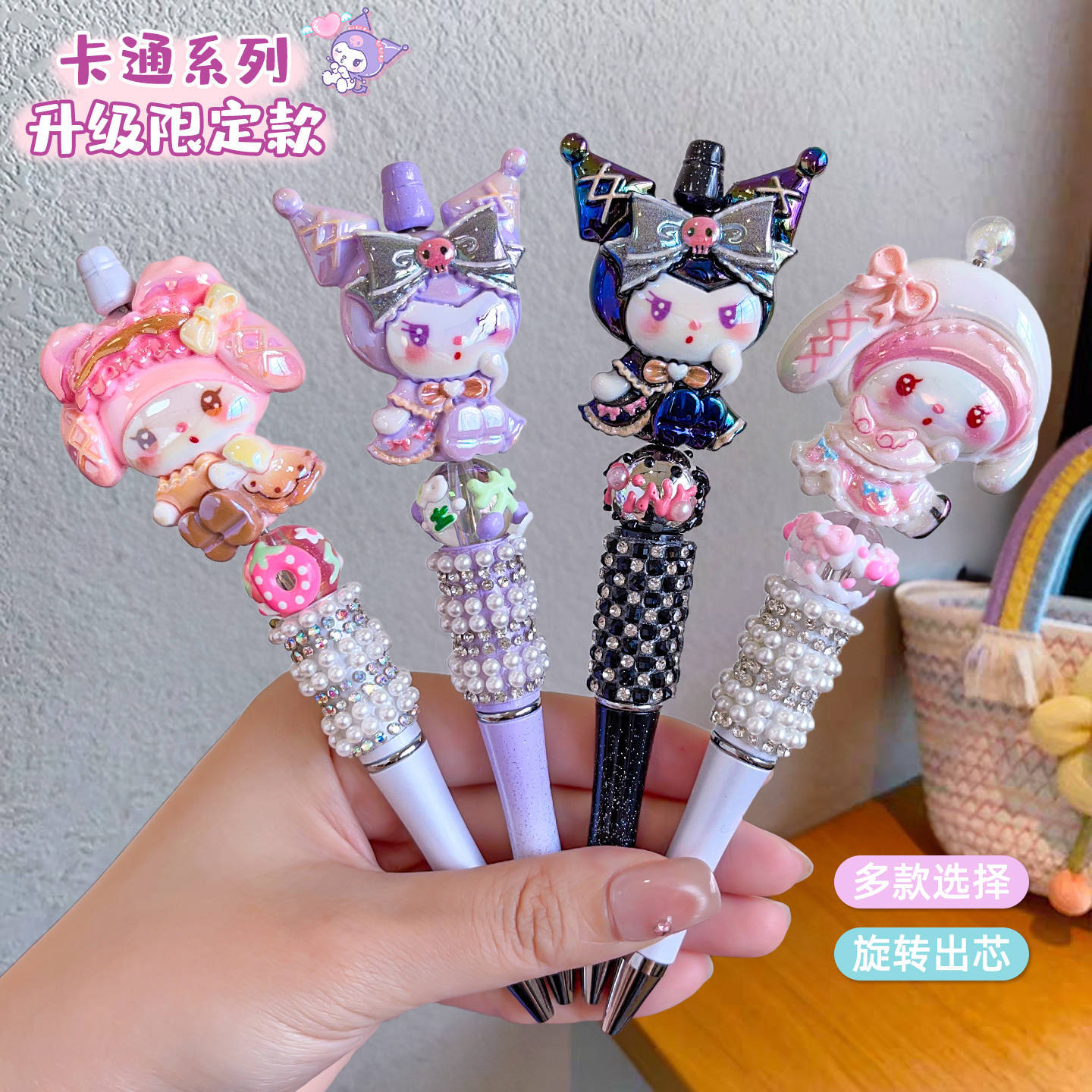 卡通三丽鸥水晶闪钻旋转中性笔可爱学生女生库洛米美乐蒂串珠笔