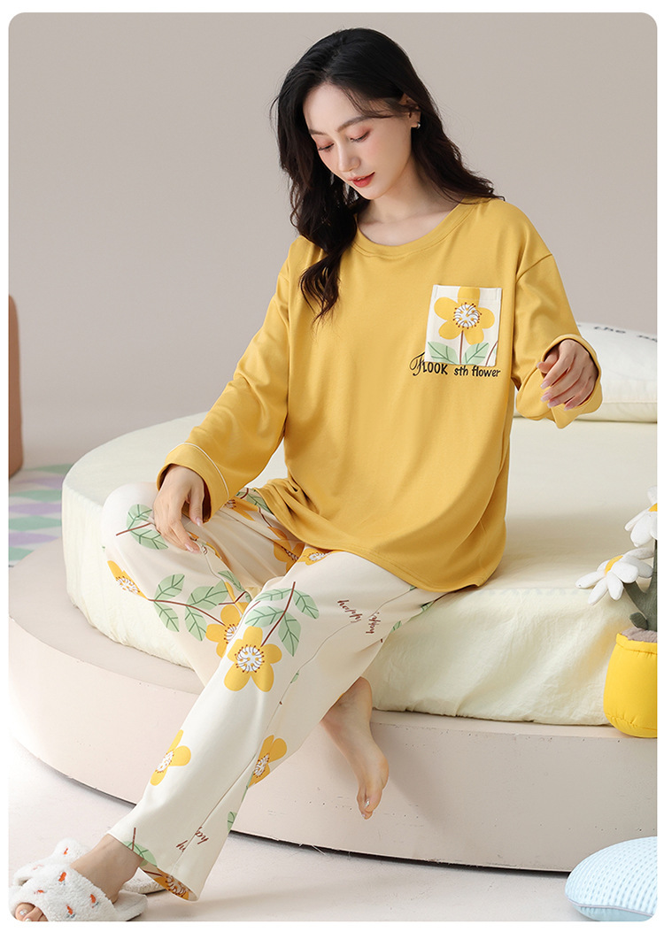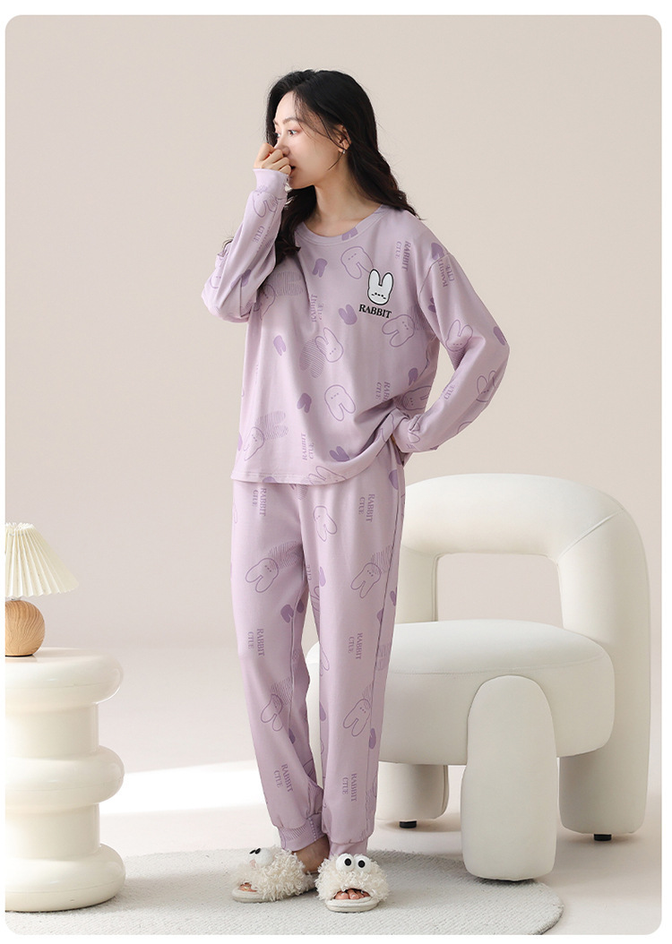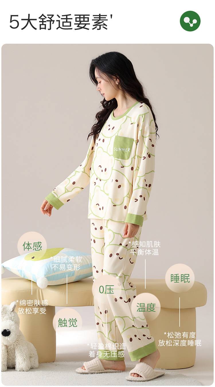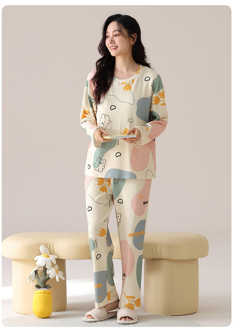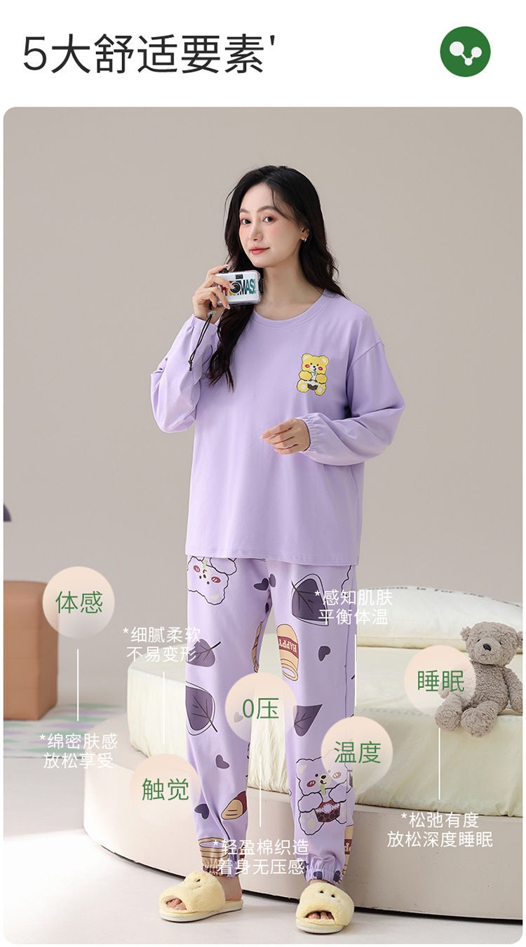 睡衣女款长袖长裤春秋季纯棉套头圆领宽松大码外穿家居服两件套装