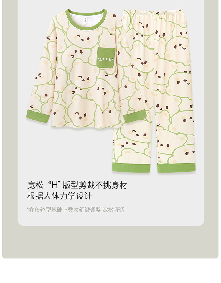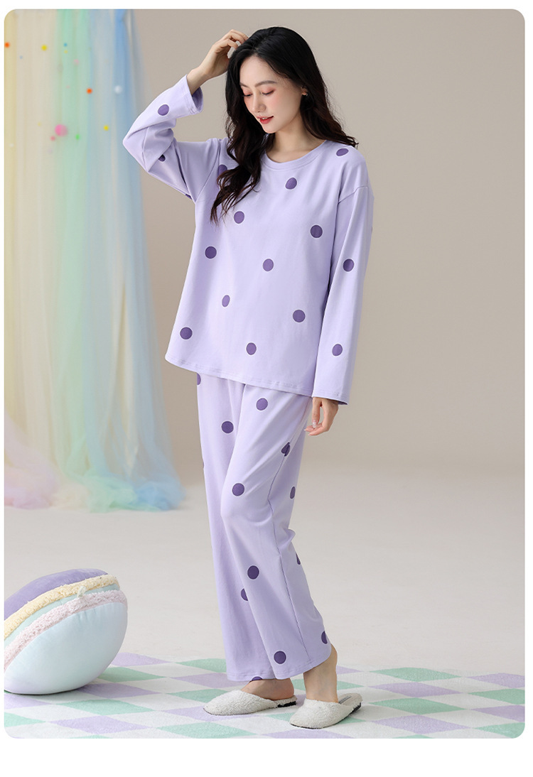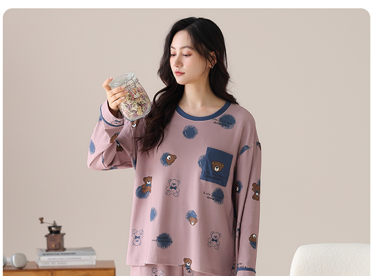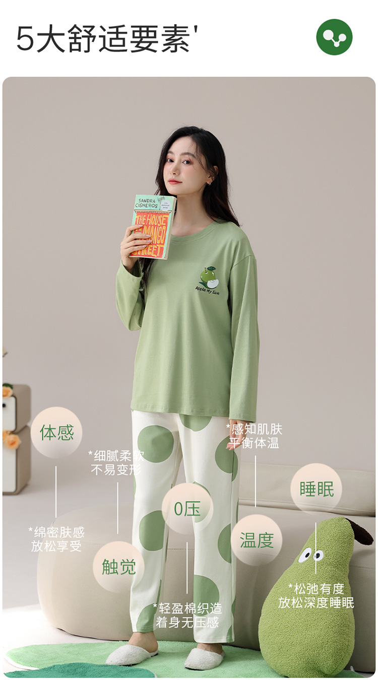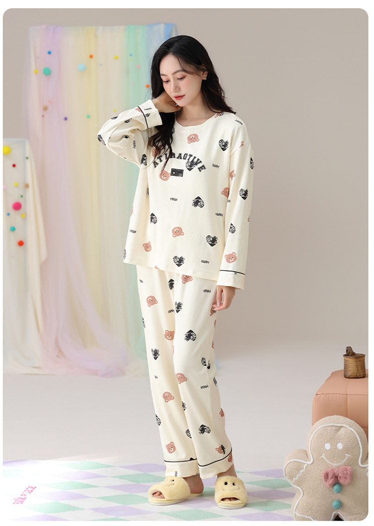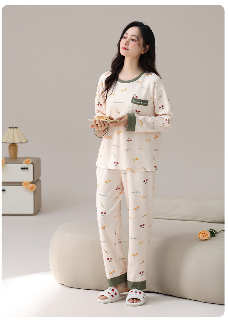 睡衣女款长袖长裤春秋季纯棉套头圆领宽松大码外穿家居服两件套装