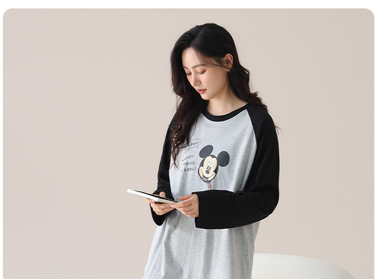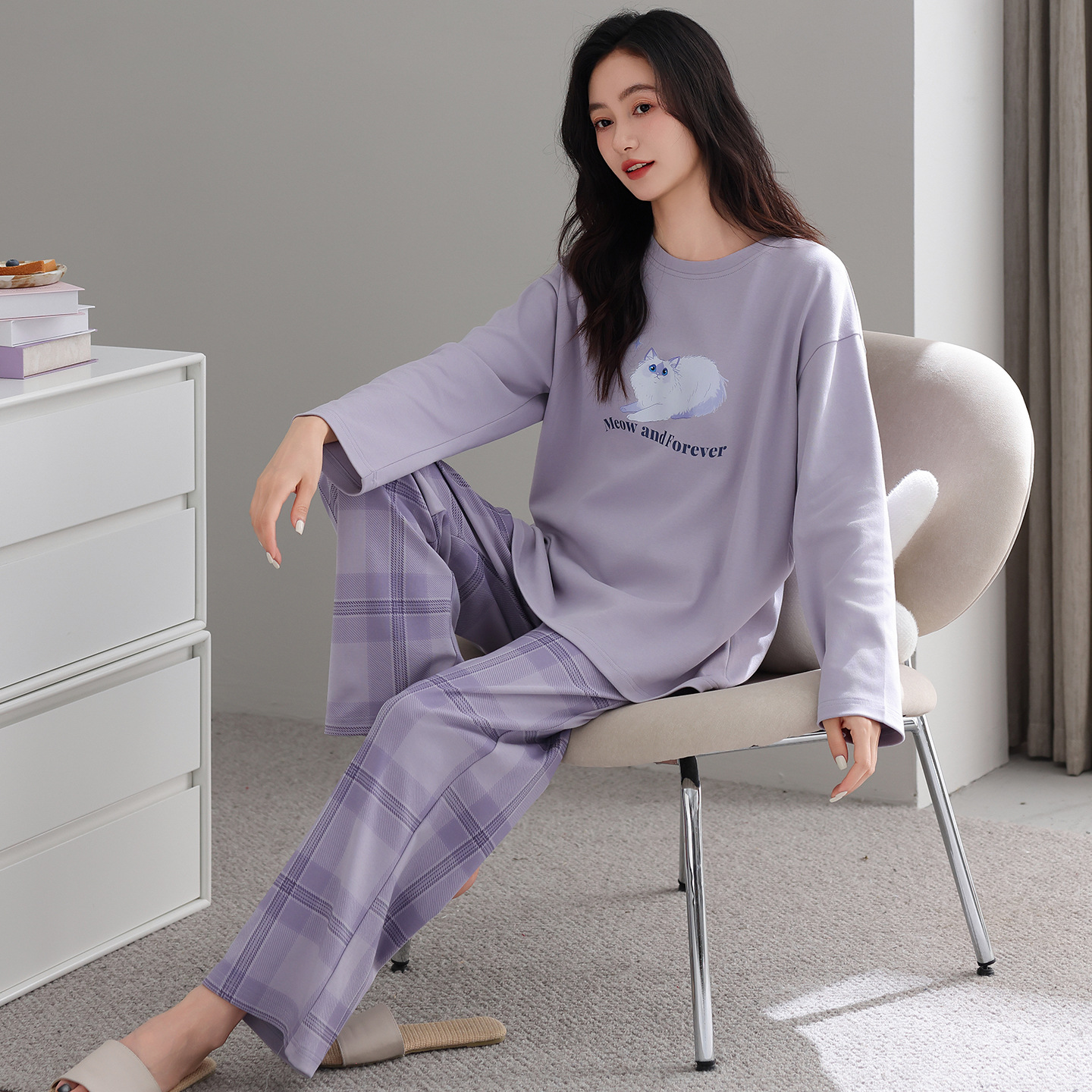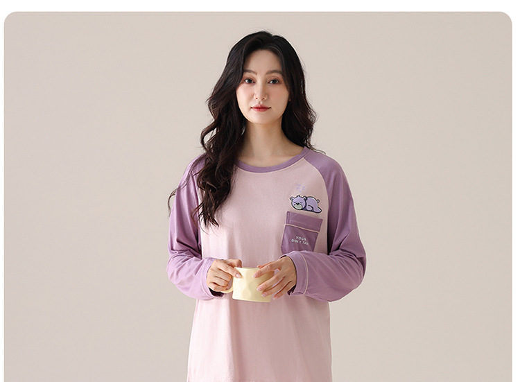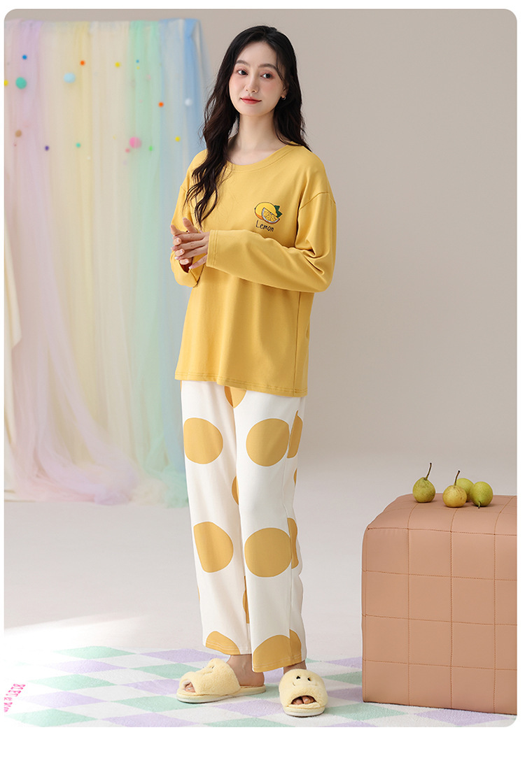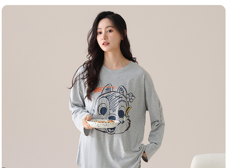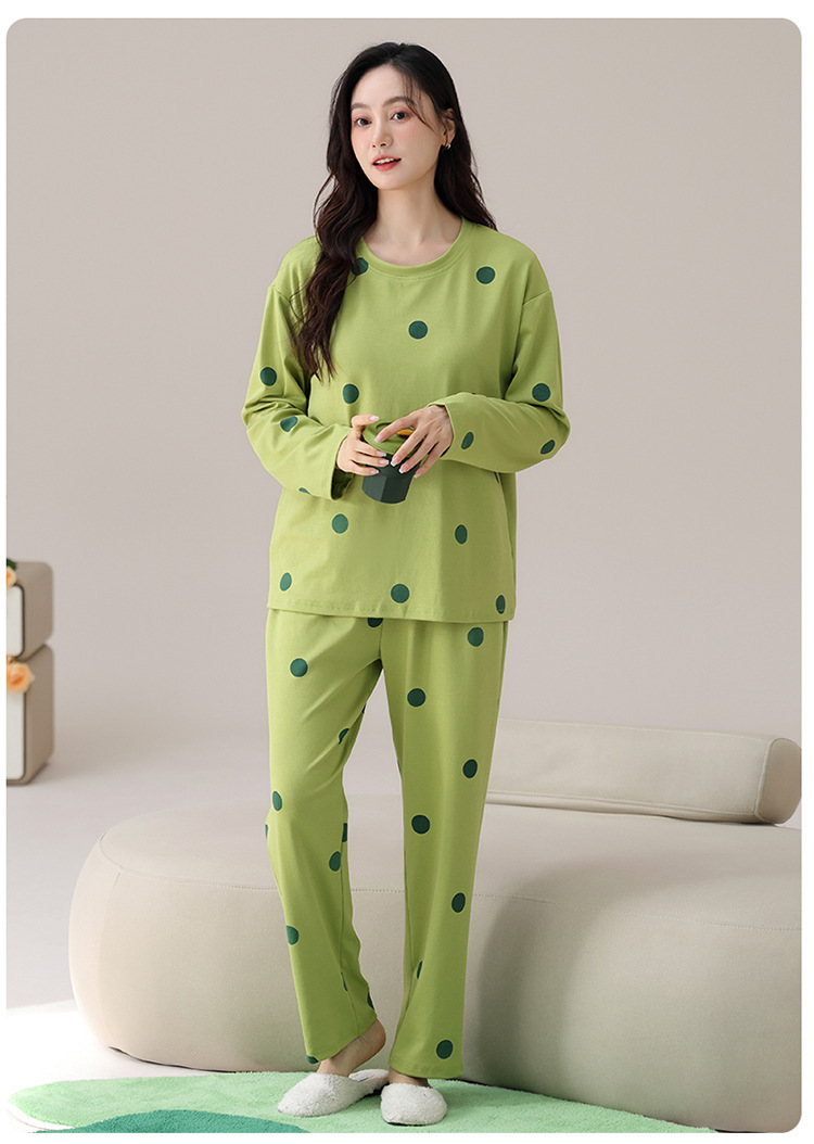 睡衣女款长袖长裤春秋季纯棉套头圆领宽松大码外穿家居服两件套装